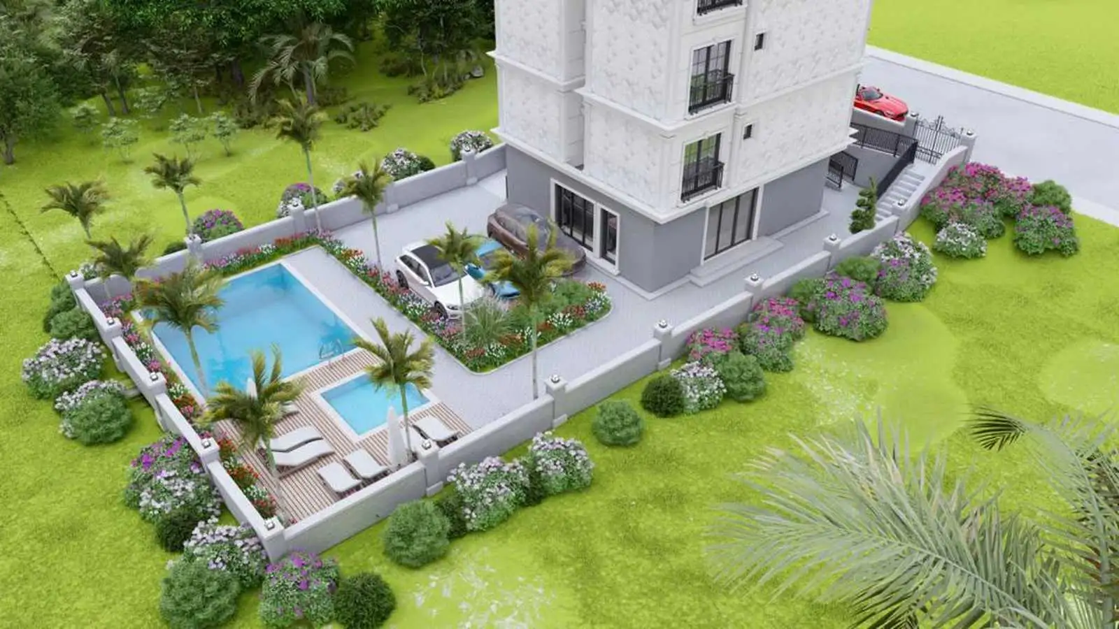Что в комплексе: В комплексе предусмотрена полная социальная инфраструктура для круглогодичного проживания и отдыха для всей семьи, а именно: спортивный зал, детская площадка, просторный летний бассейн для взрослых и детей, площадка для барбекю и парковка. На территории комплекса будет находиться зеленый сад с изысканными местами для отдыха. Комплекс будет находиться под охраной и круглосуточным видеонаблюдением.;