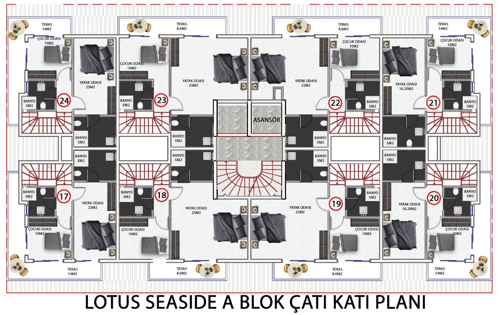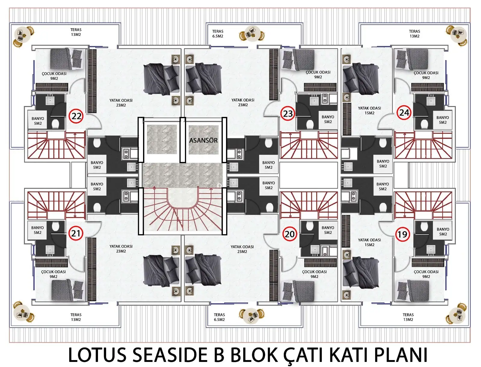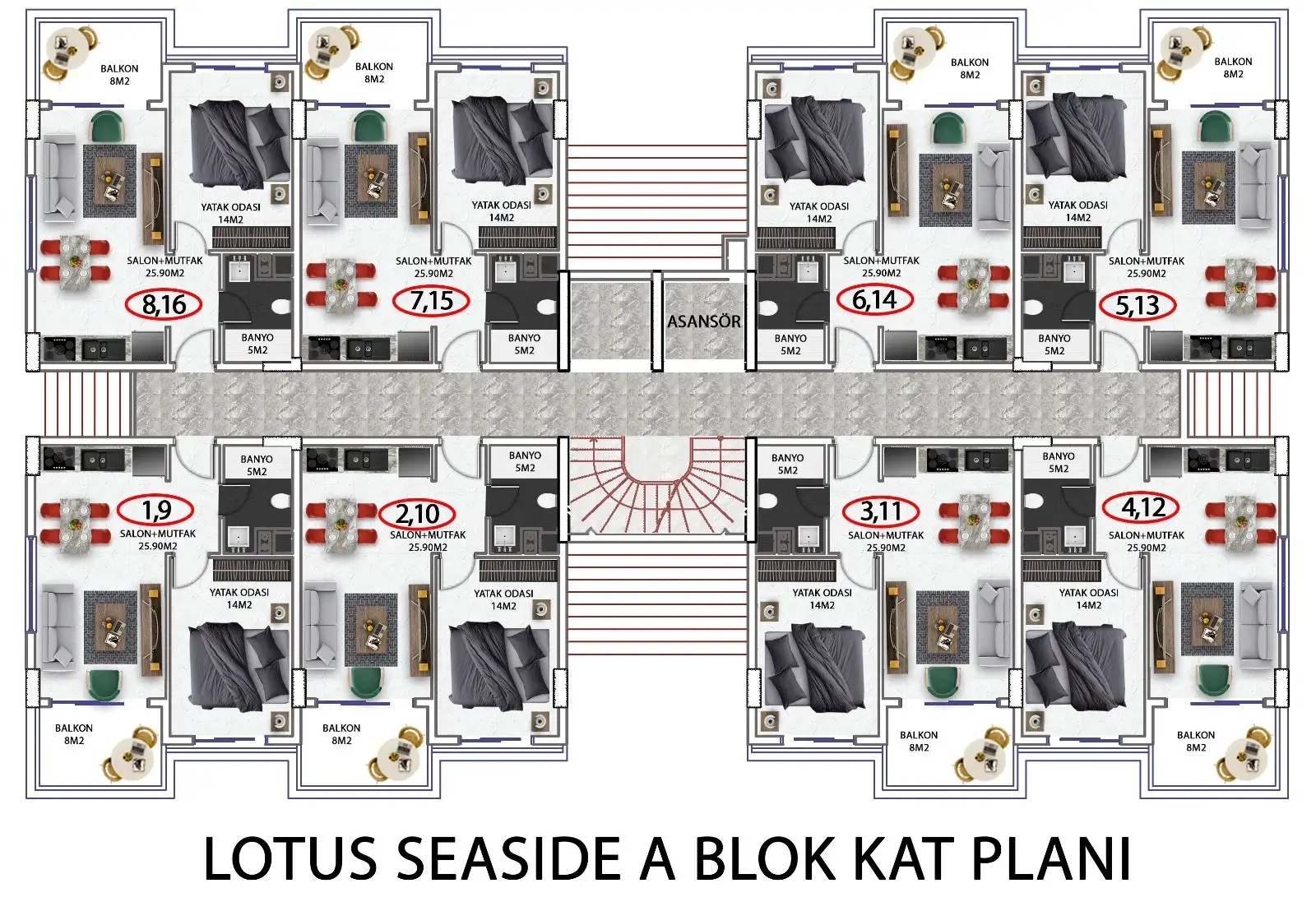 Что рядом: Всего в 100 м от комплекса находиться Средиземное море, а в центральной части района есть большой крытый рынок, ТЦ, продуктовый и вещевой рынок 2 раза в неделю, автобусные остановки.