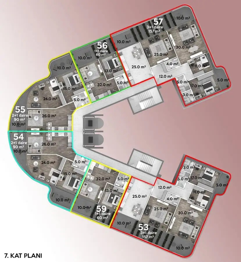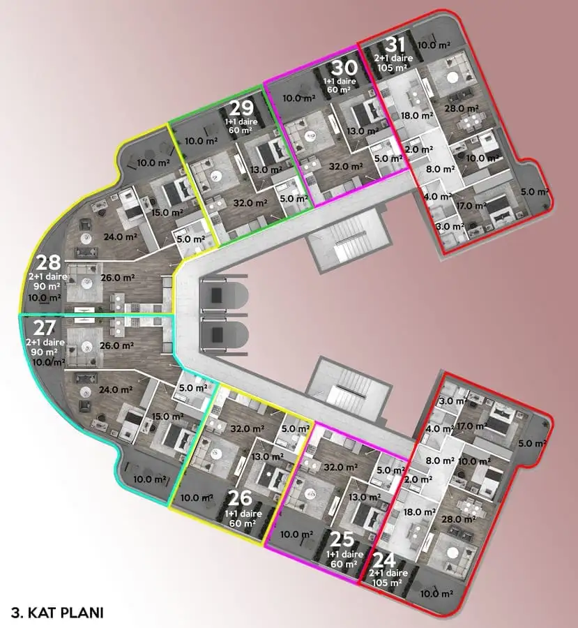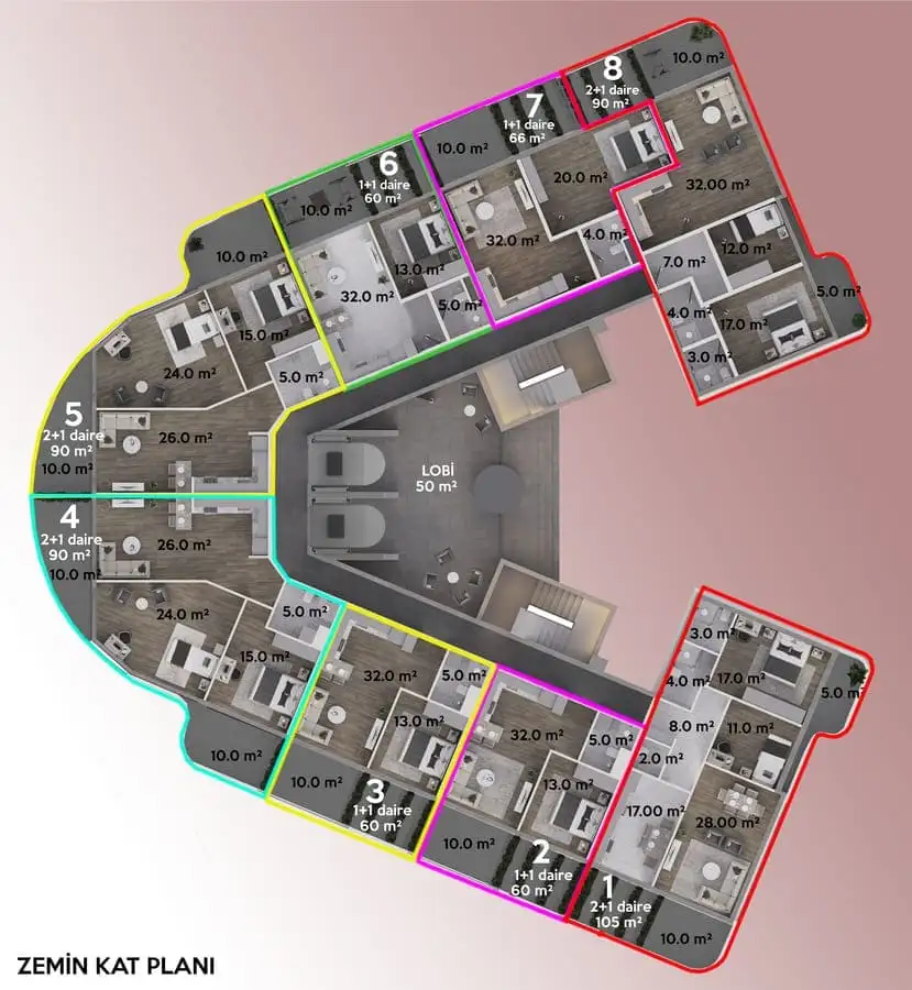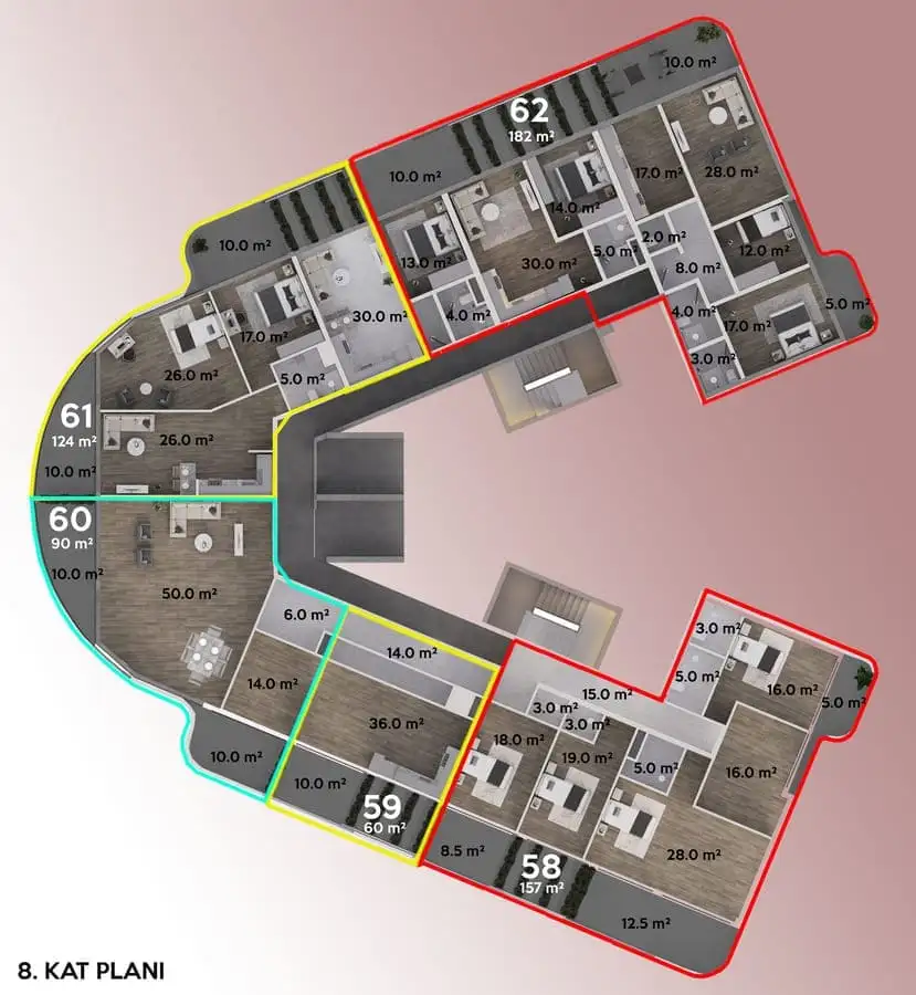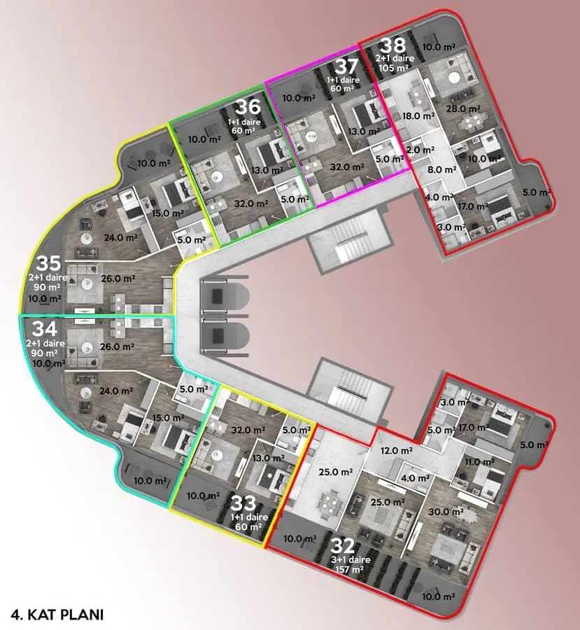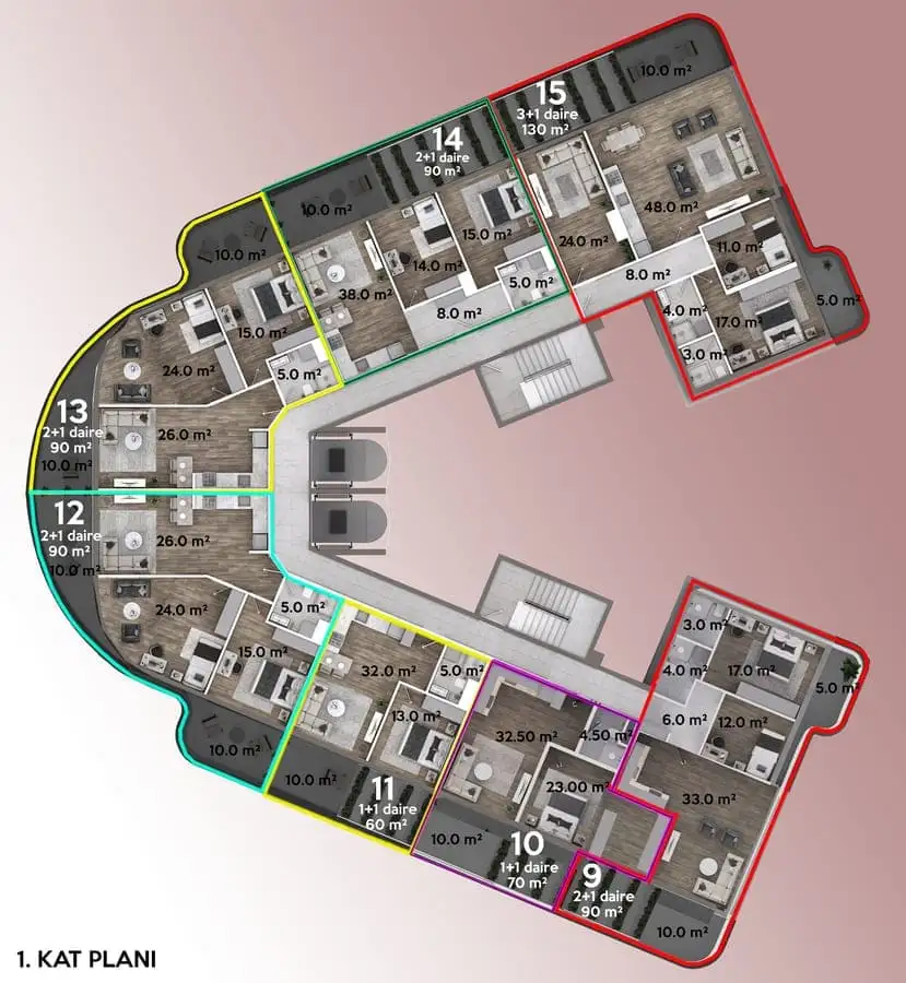 Что вы получаете: Апартаменты в комплексе с развитой инфраструктурой в районе Газипаша.