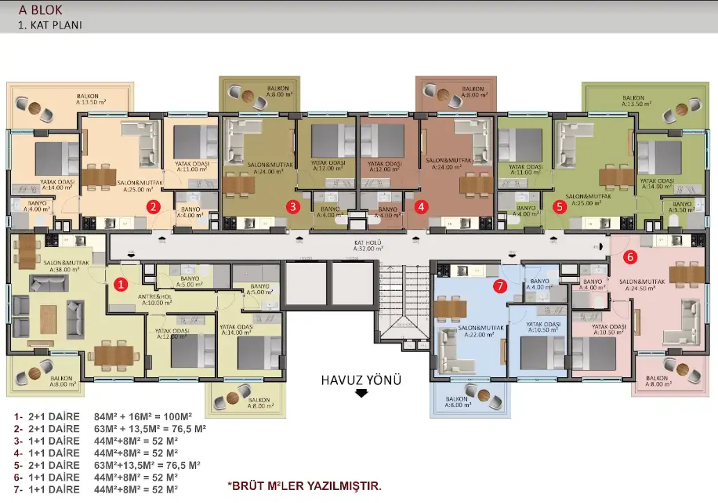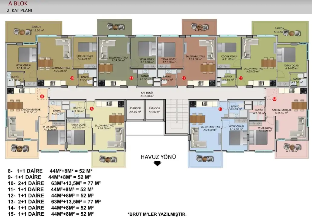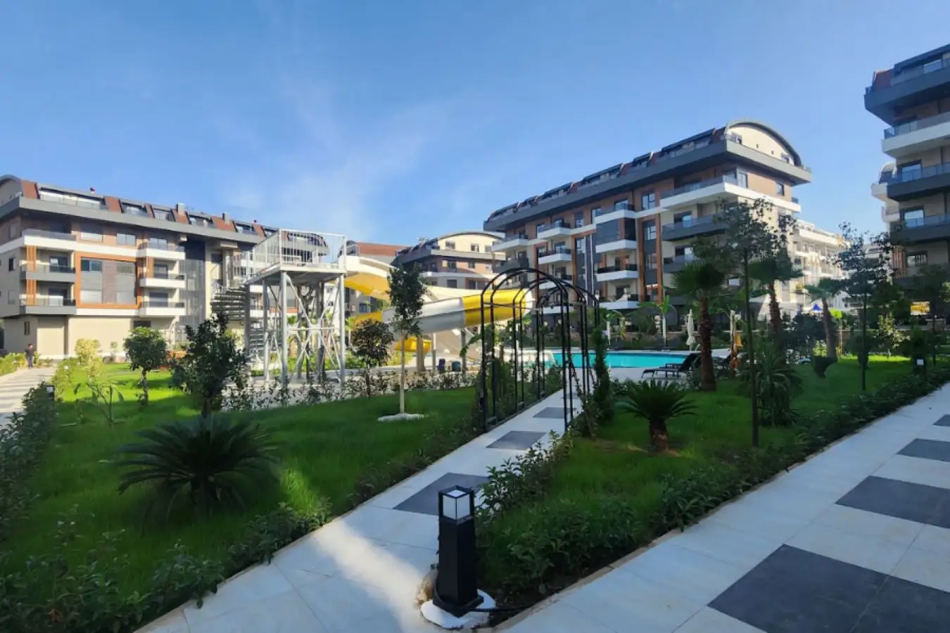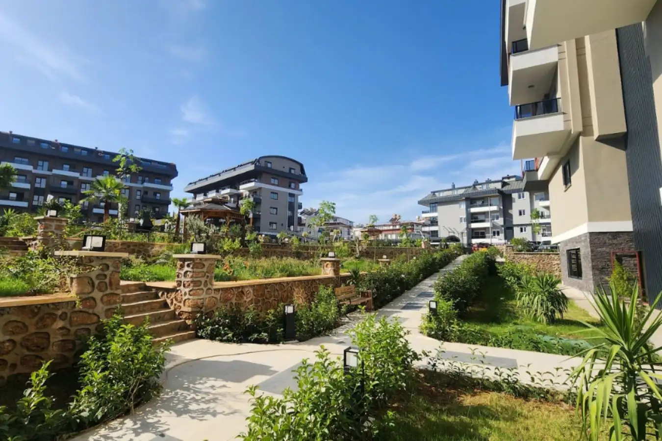 Что в комплексе: Комплекс состоит из шести 5-этажных блоков, 180 квартир разной планировки площадью от 50 до 205 квадратных метров. Территория украшена декоративными, зелеными насаждениями и ухоженным садом. Из окон квартир будет прекрасный вид на всю Аланью и море. В комплексе отлично развита инфраструктура. Представлен широкий выбор квартир разных планировок, дуплексы с выходом в сад и пентхаусы.