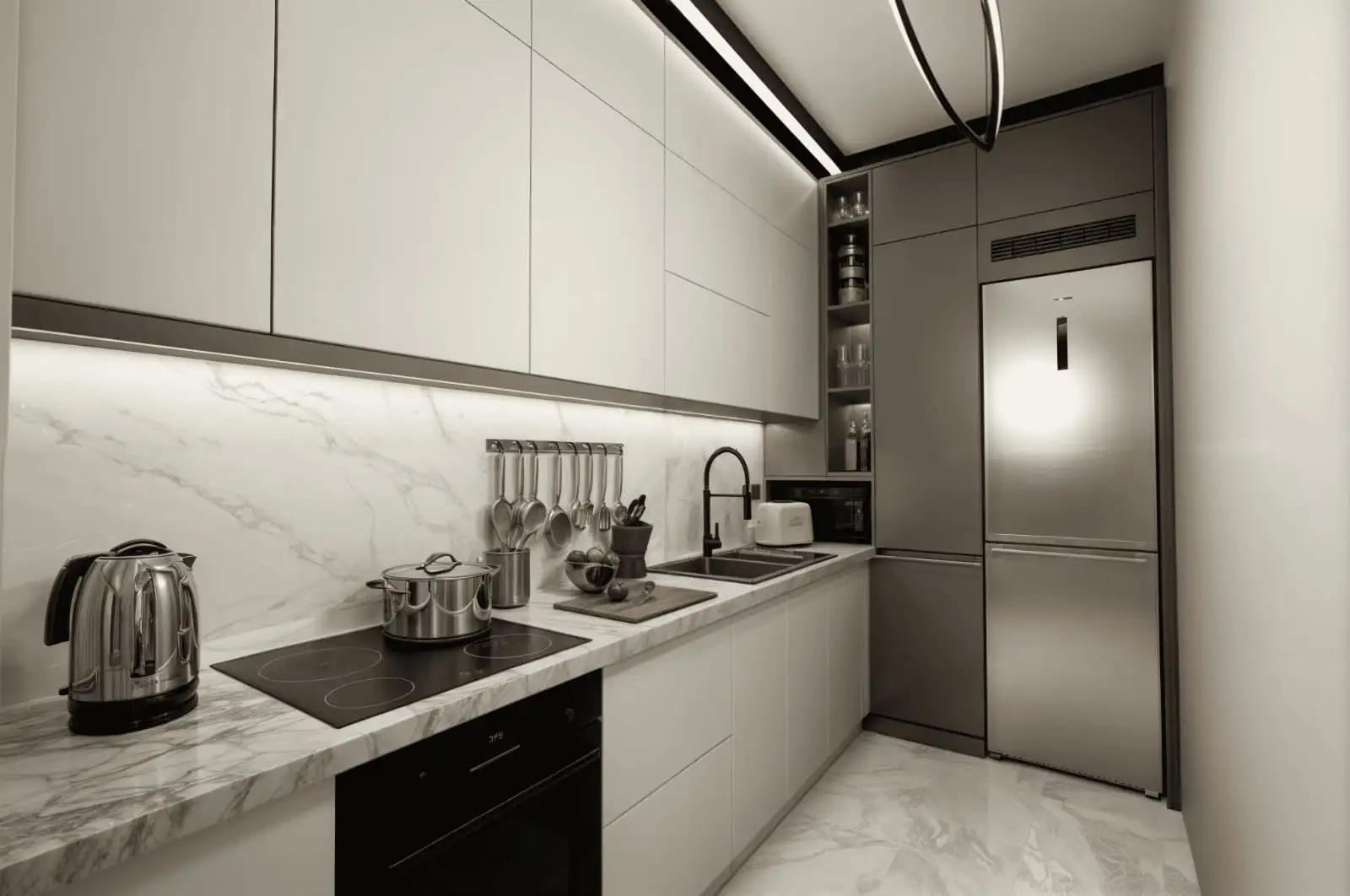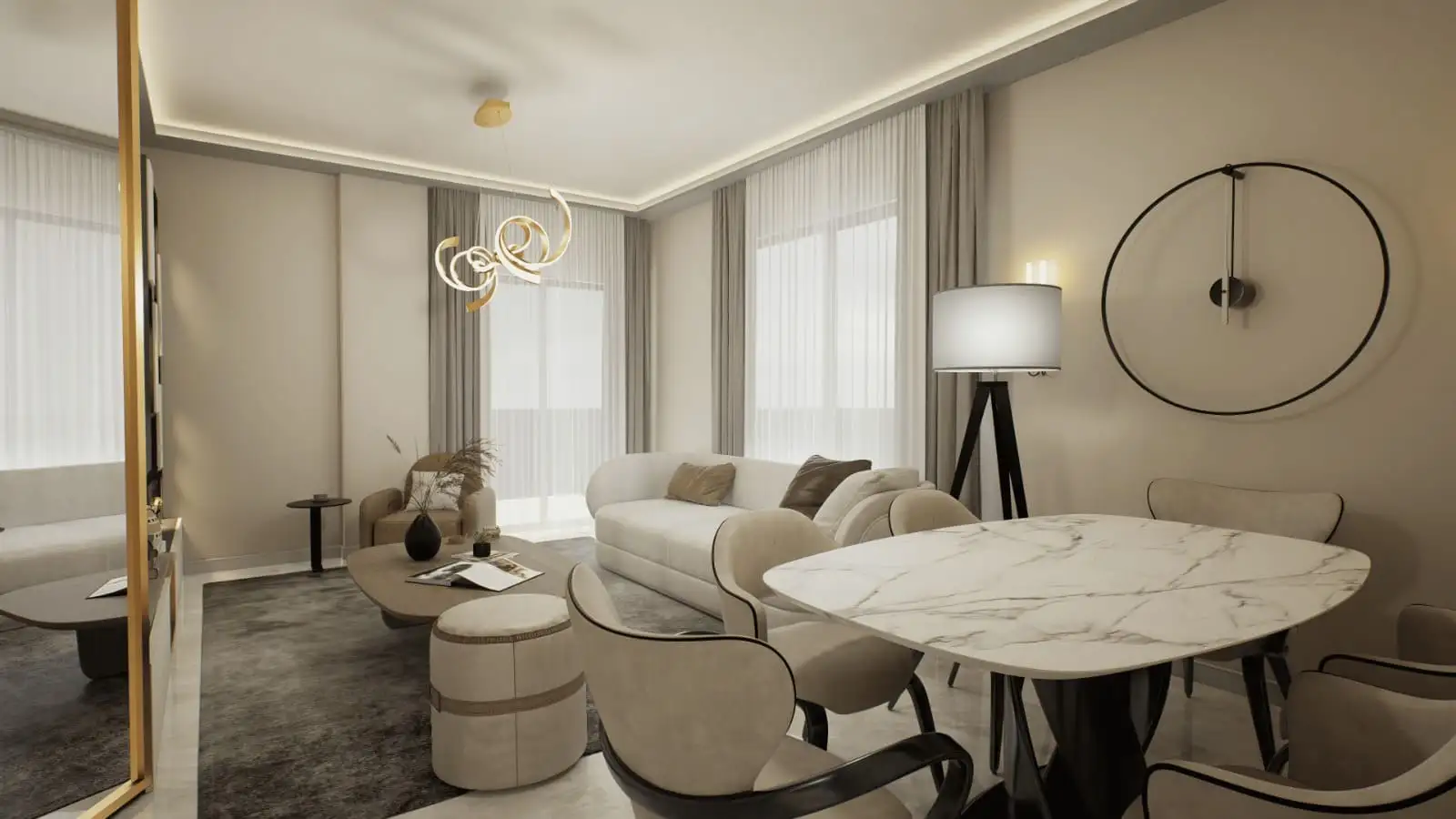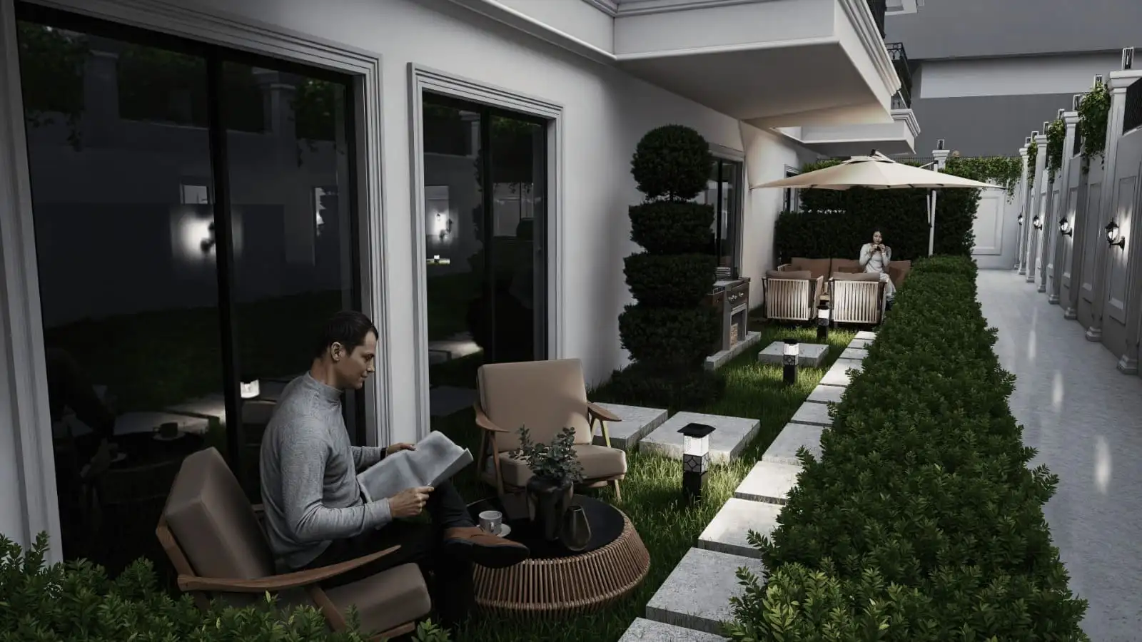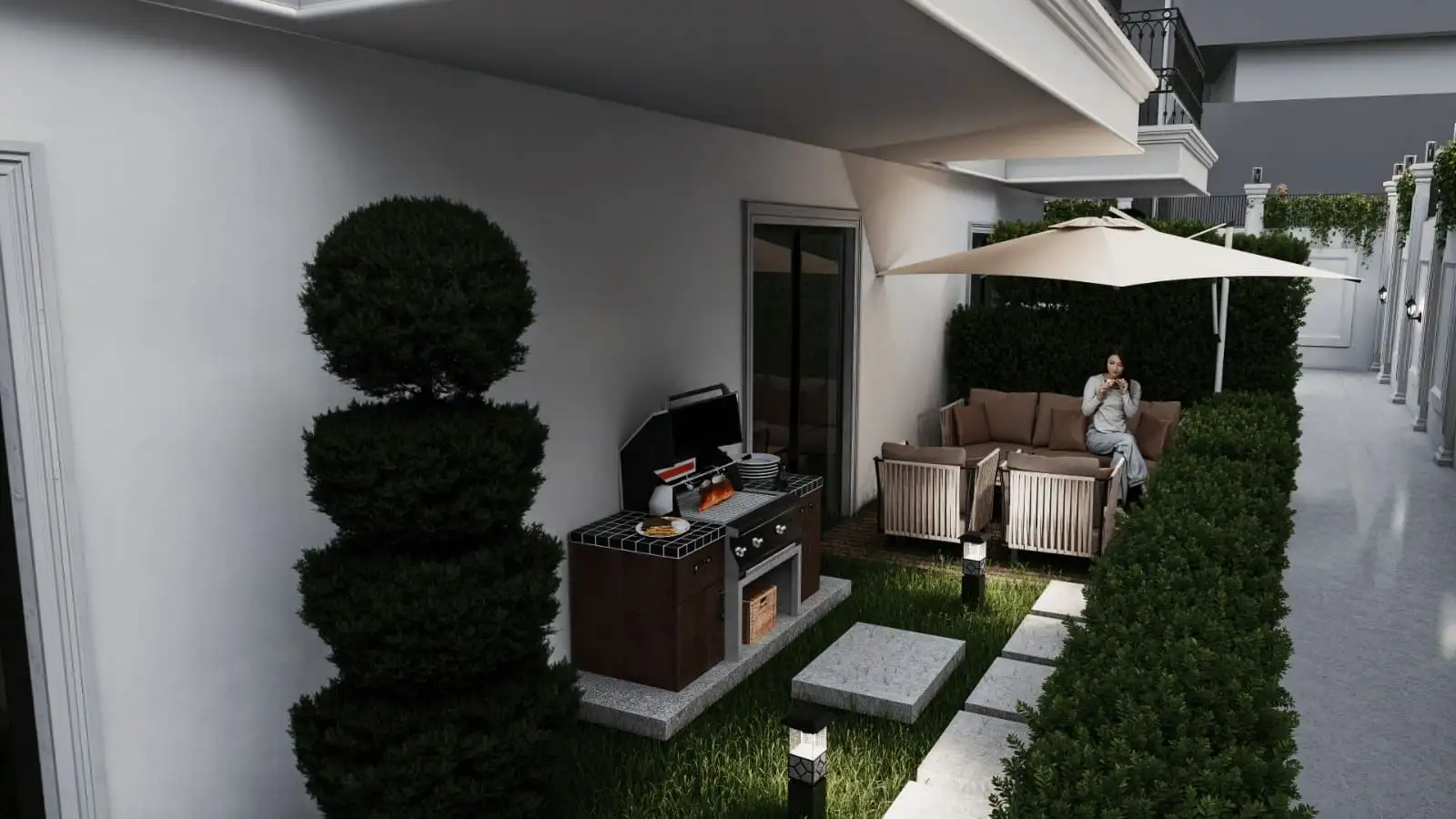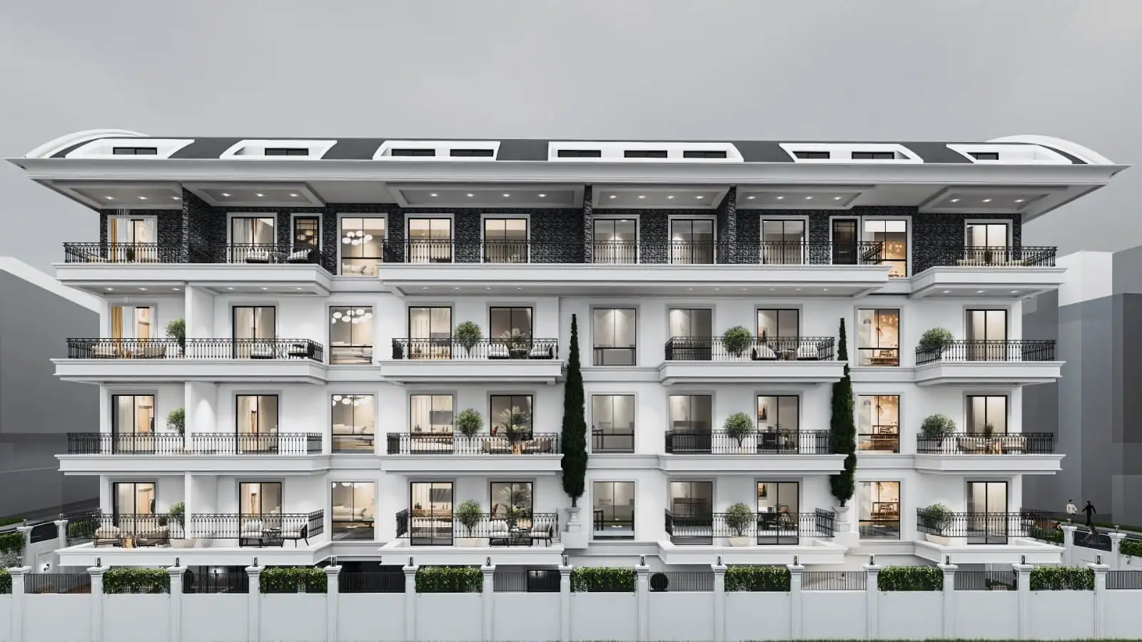Внутри: В проекте предусмотрены различные планировки квартир: просторные 1+1, 2+1, 3+1 и 4+1, а также эксклюзивные квартиры 3+1 с собственным садом и видом на бассейн. Все апартаменты отличаются продуманными планировками, большими окнами, современными кухнями открытого типа, качественной отделкой и использованием премиальных материалов. Пространство создаёт ощущение свободы и света, а балконы и террасы позволяют наслаждаться мягким морским климатом Алании.