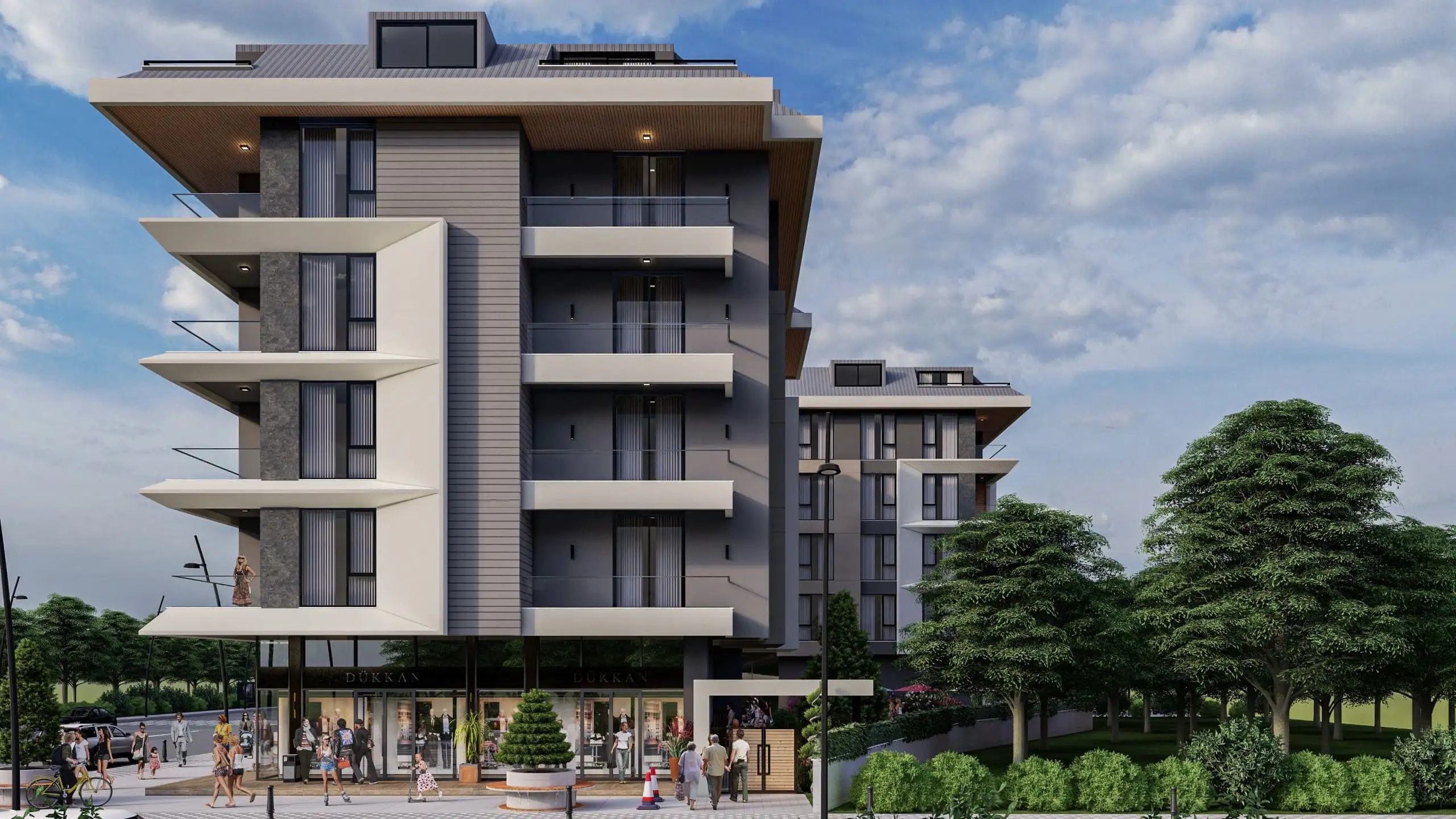 Что рядом: Комплекс выгодно расположен рядом с основными удобствами: до ближайшего торгового центра всего 50 метров, а международные аэропорты Газипаша и Анталия находятся в 35 и 130 км соответственно, что делает его удобным выбором для тех, кто часто путешествует. Все необходимые магазины, рестораны и другие объекты инфраструктуры находятся в шаговой доступности.