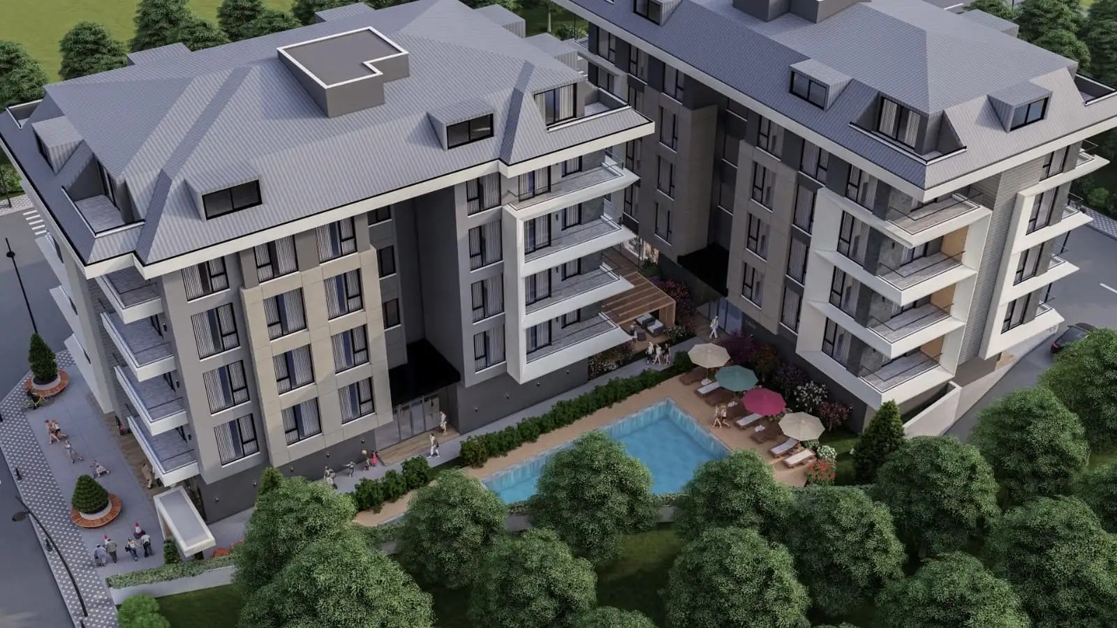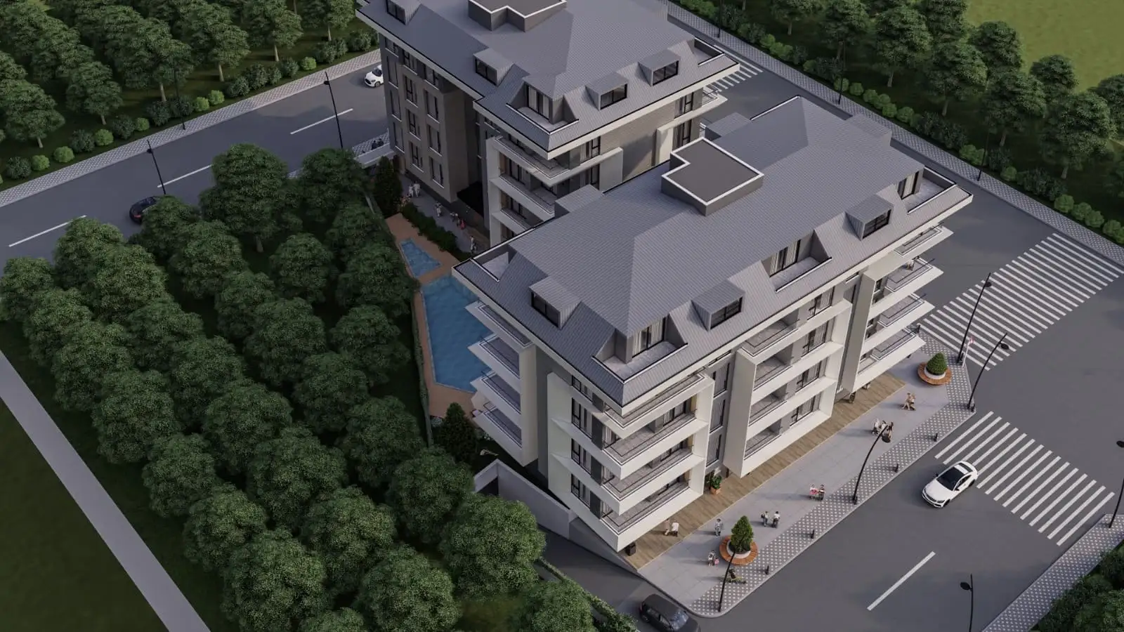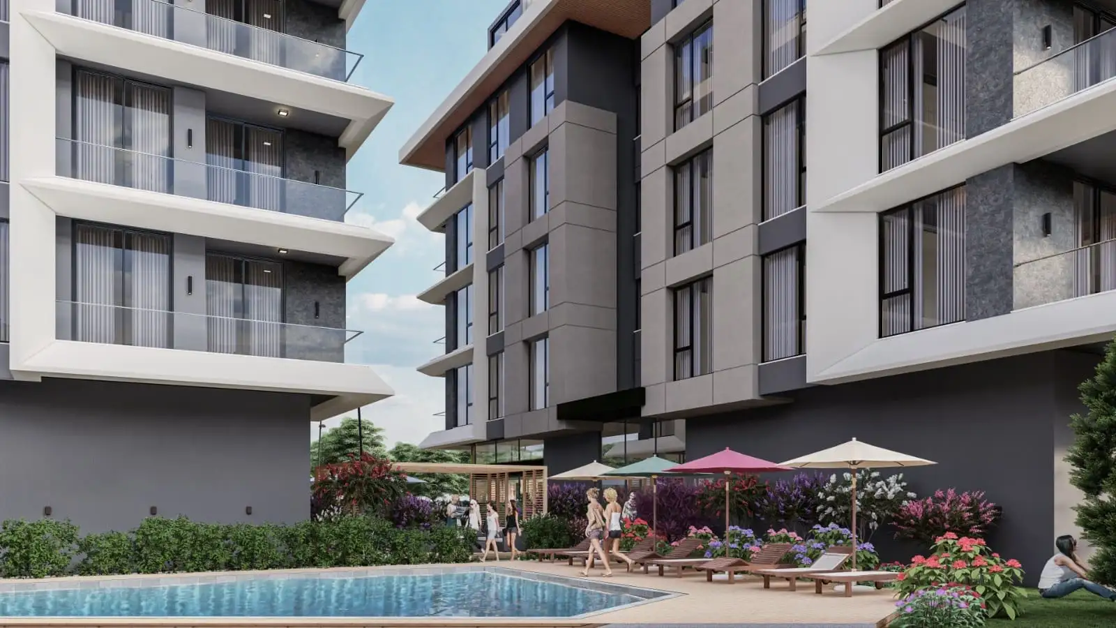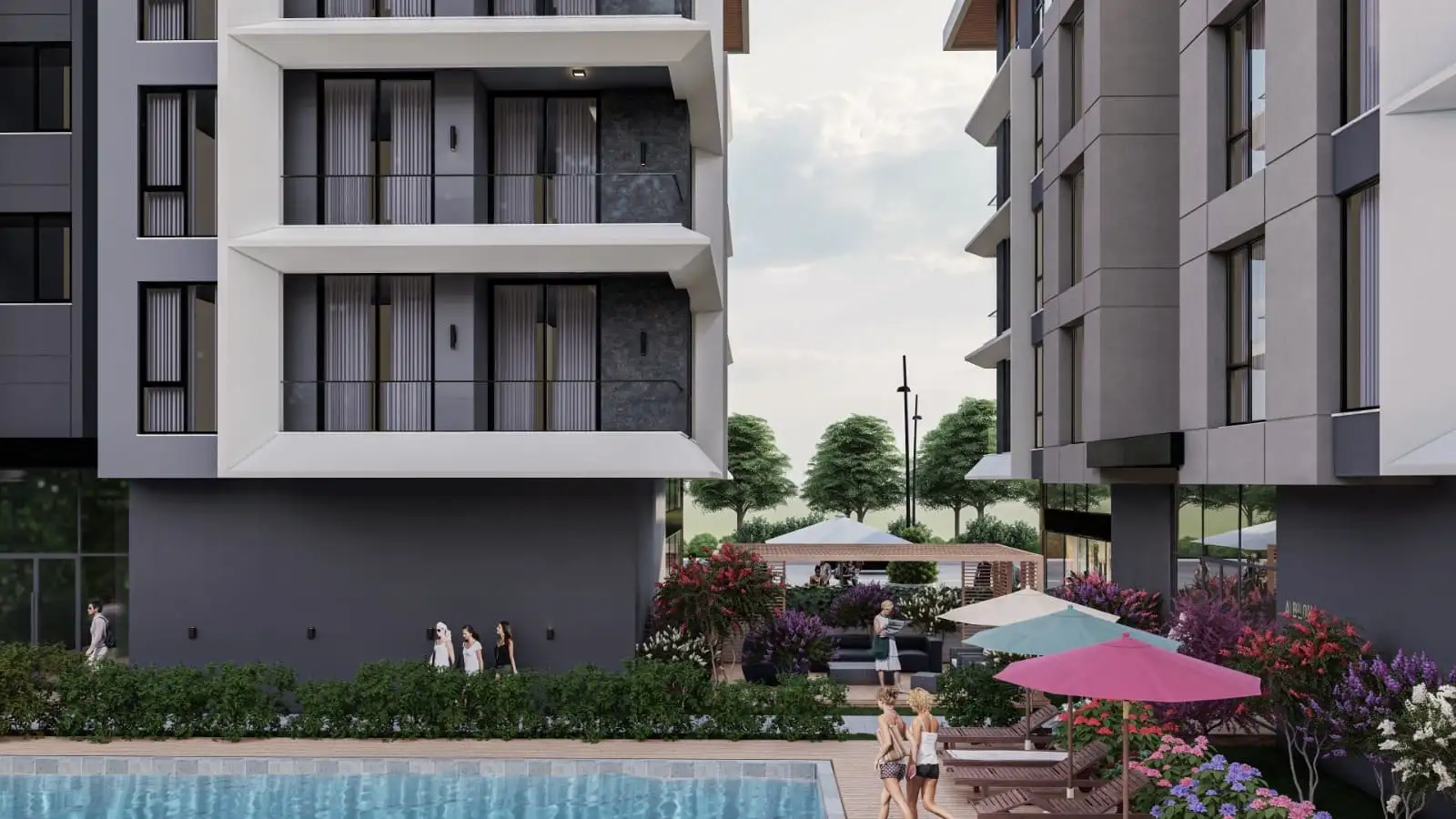 Что в комплексе: Жилой комплекс состоит из двух блоков, всего 40 квартир и 13 коммерческих помещений. Комплекс предлагает все условия для комфортной жизни: открытый плавательный бассейн, зоны для загара, детскую игровую площадку, закрытую парковку, ухоженный сад с зелеными зонами, тропическими деревьями и цветами, круглосуточную охрану и видеонаблюдение. Кроме того, в комплексе будет работать служба уборки и техподдержки, а для гостей предусмотрены парковочные места.