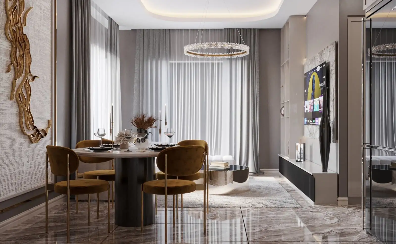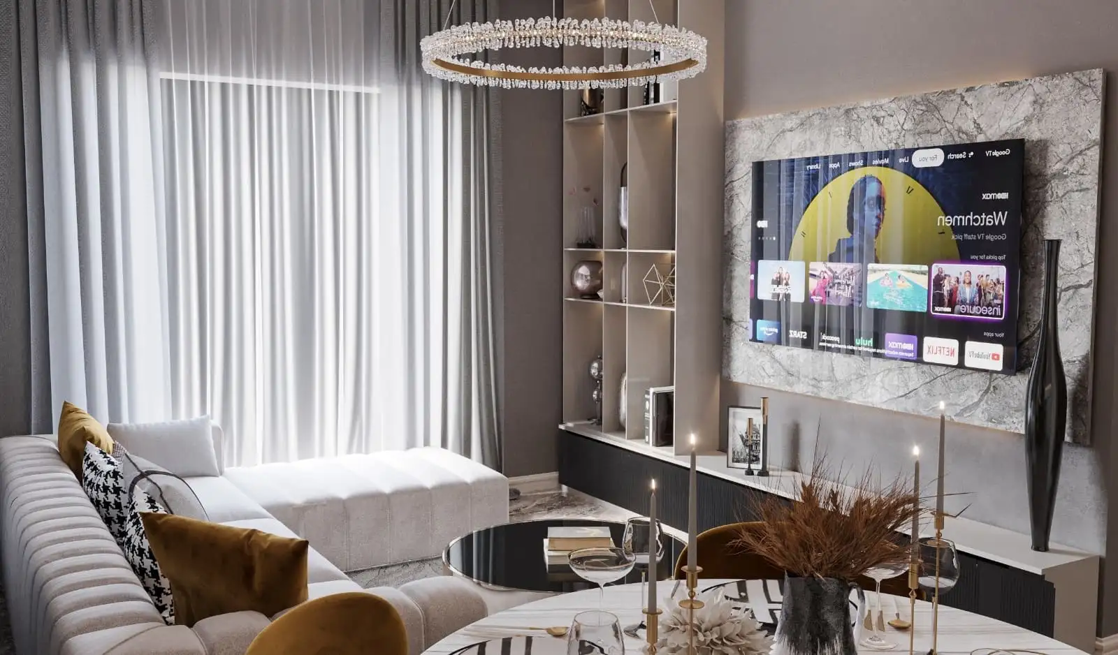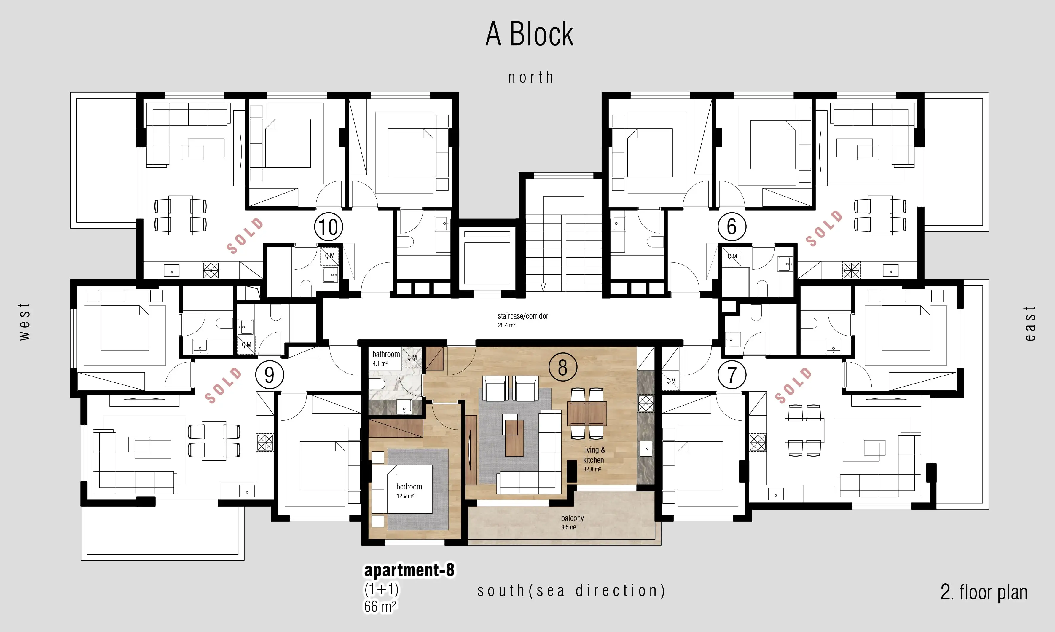 Внутри: Все квартиры выполнены в современном дизайне и оснащены высококачественными материалами, включая подогрев полов в ванных комнатах, электрический водонагреватель, встроенные точечные светильники, панорамные балконные двери, стальные входные двери и двойные стеклопакеты для максимальной безопасности и комфорта, видеодомофон, современную полностью оборудованную кухню, а также керамическое покрытие пола и отделку ванных комнат