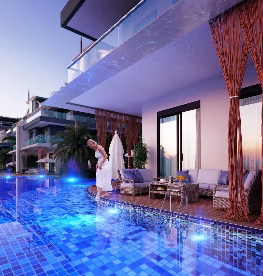 Кому может быть интересным: Отличное предложение для тех, кто мечтает о новых апартаментах в комплексе с развитой инфраструктурой, соответствующей уровню отеля 5 звезд, дешевле рыночной цены, для инвестиций, близко к аэропорту, центру Алании.
