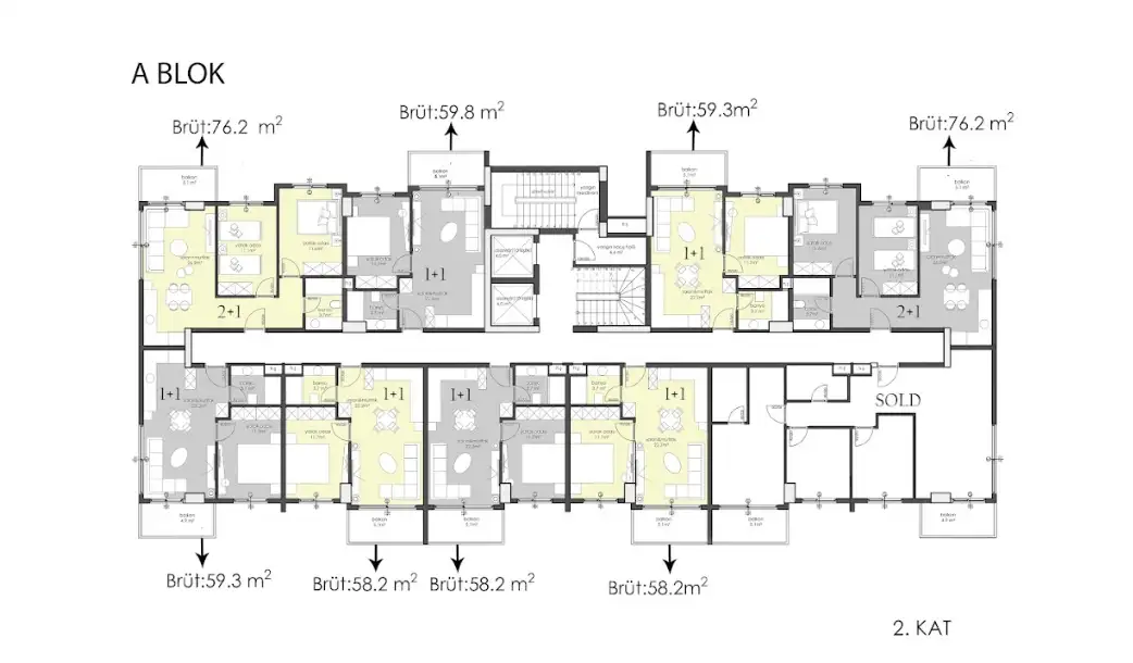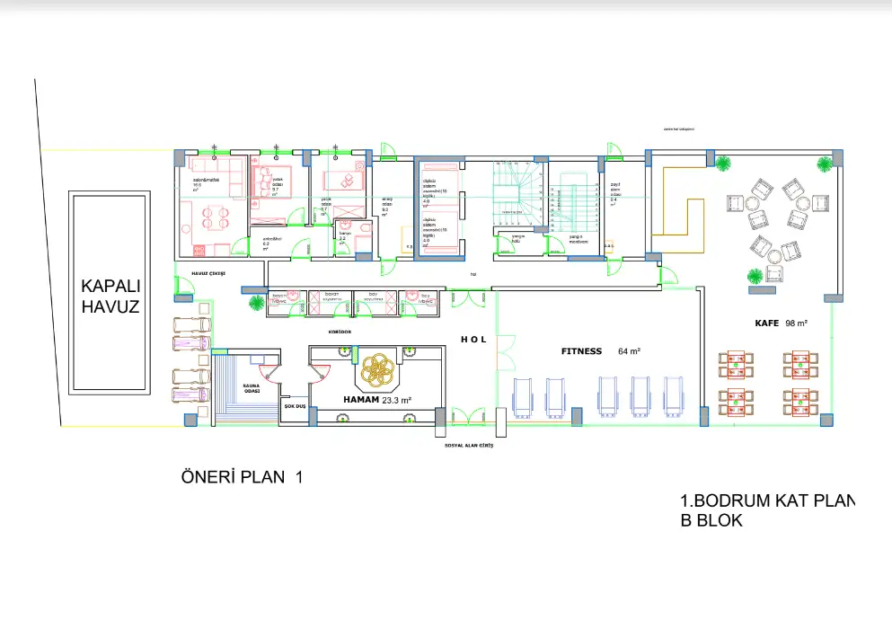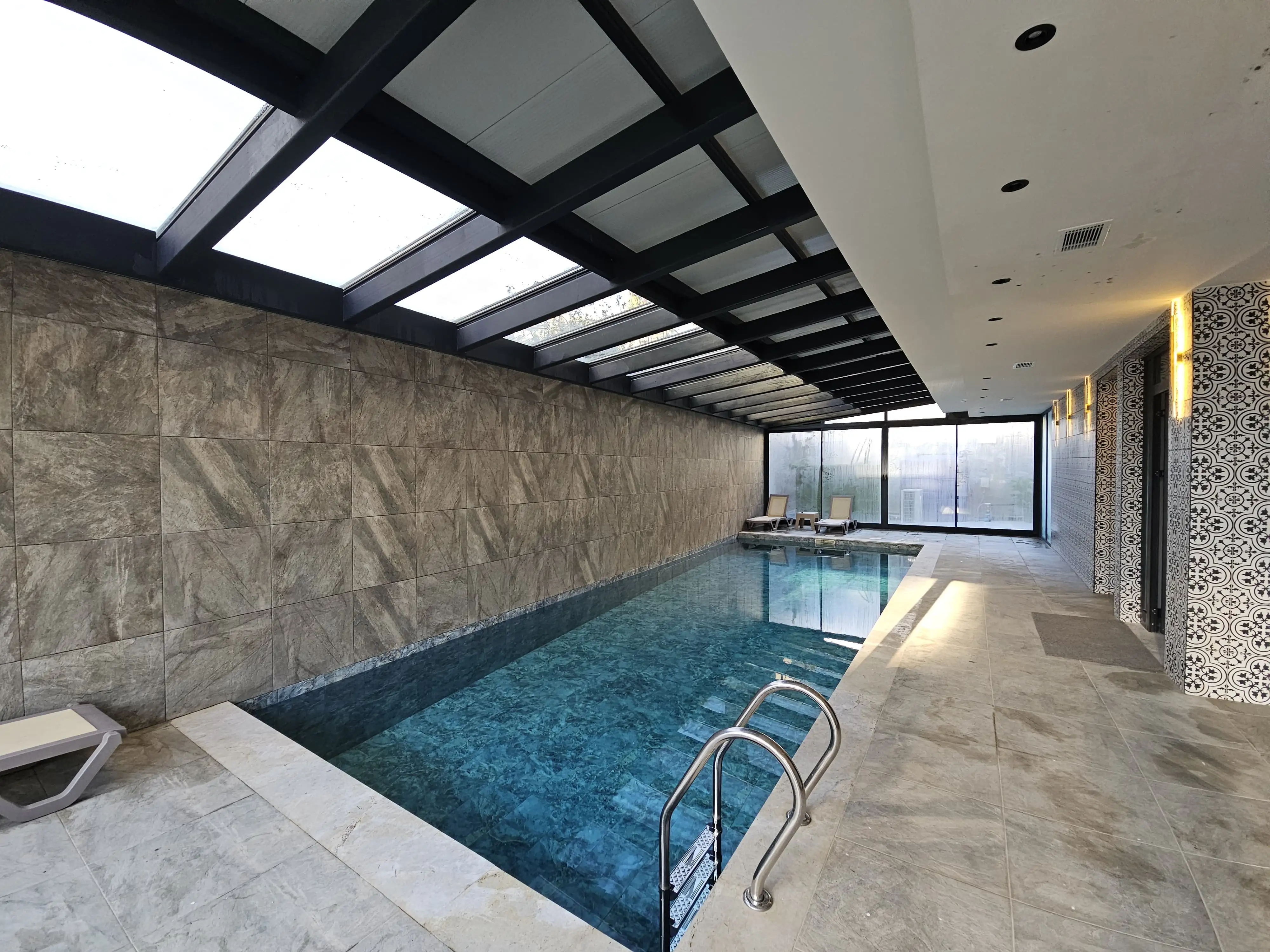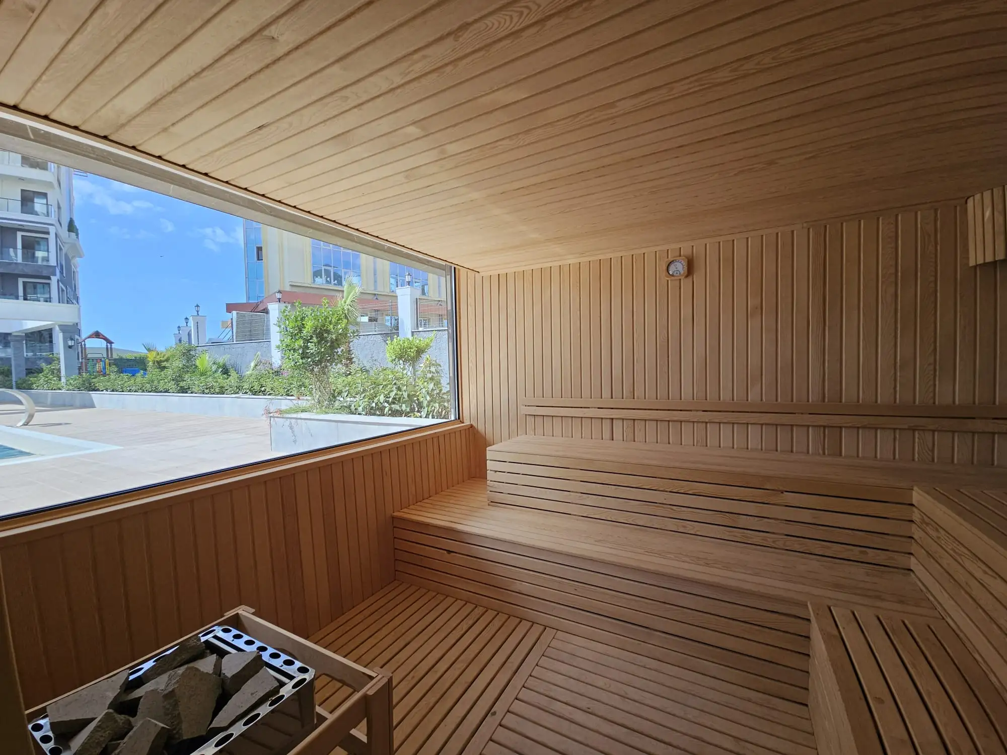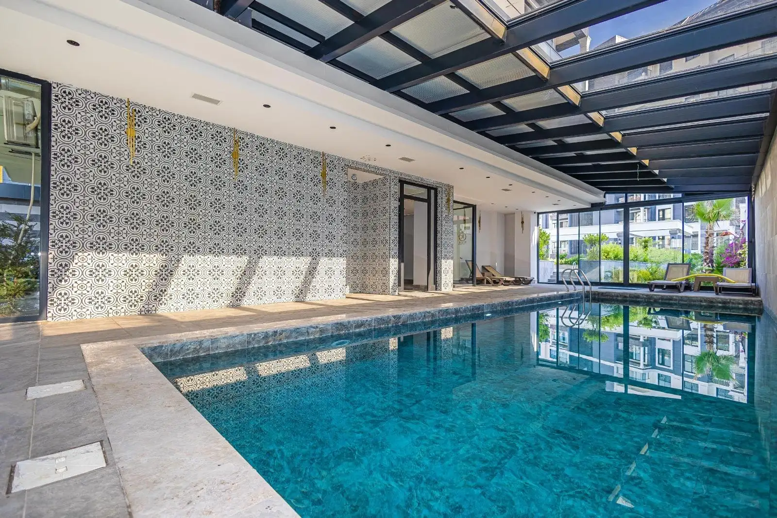 Что в комплексе: На площади в 4237 м2 расположено 2 жилых блока (137 квартир), и развитая инфраструктура, из которой имеется открытый бассейн, детский бассейн, крытый бассейн, турецкая баня, сауна, фитнес центр, кафетерий, крытая парковка, детская площадка, гостиничные номера, где могут остановиться ваши гости.