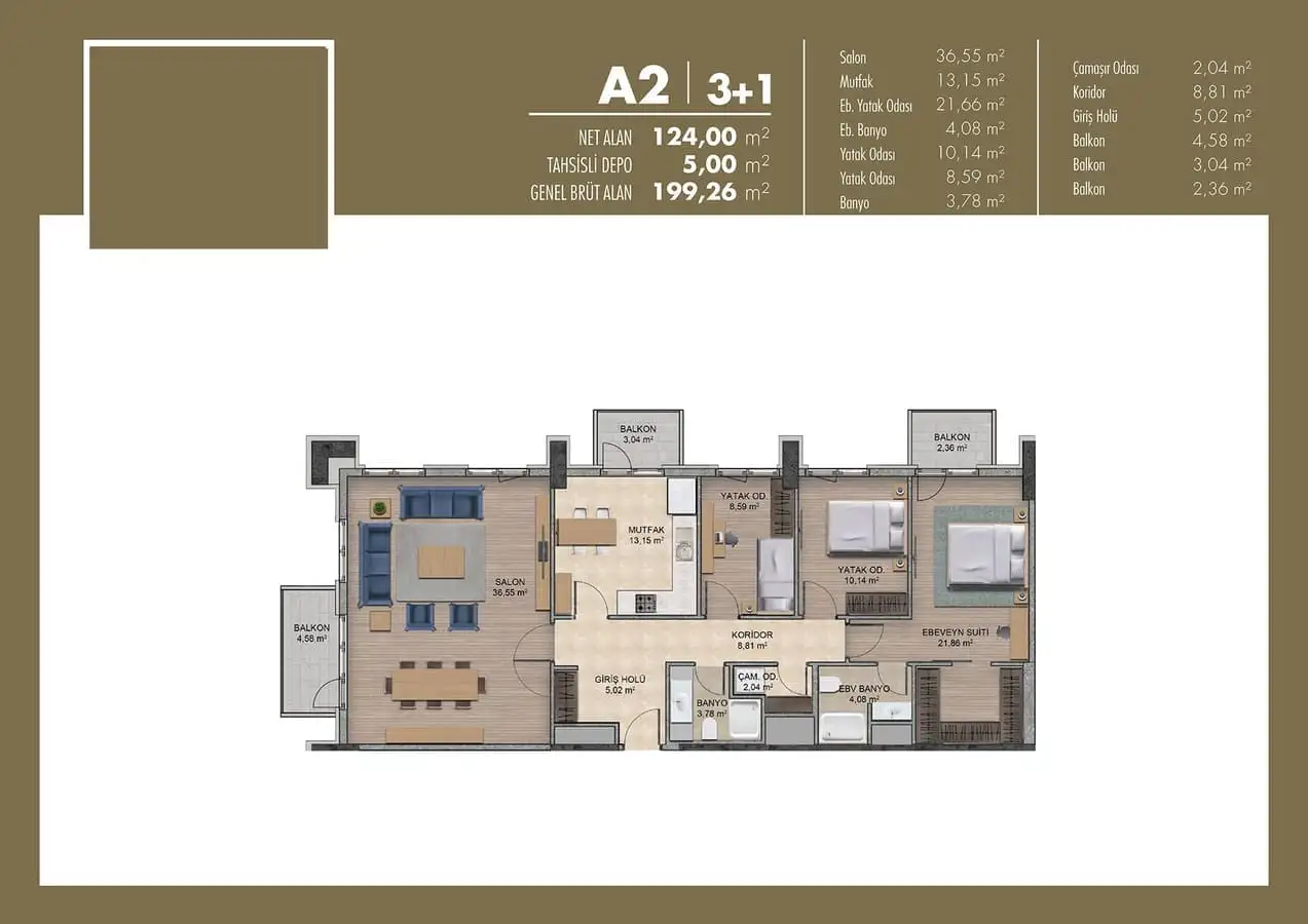 Что в комплексе: Комплекс будет находиться на территории площадью 135 000 м2 и будет состоять из 4 блоков на 609 квартир. 85% территории обустроены ландшафтным дизайном и предназначенным для семейного отдыха.