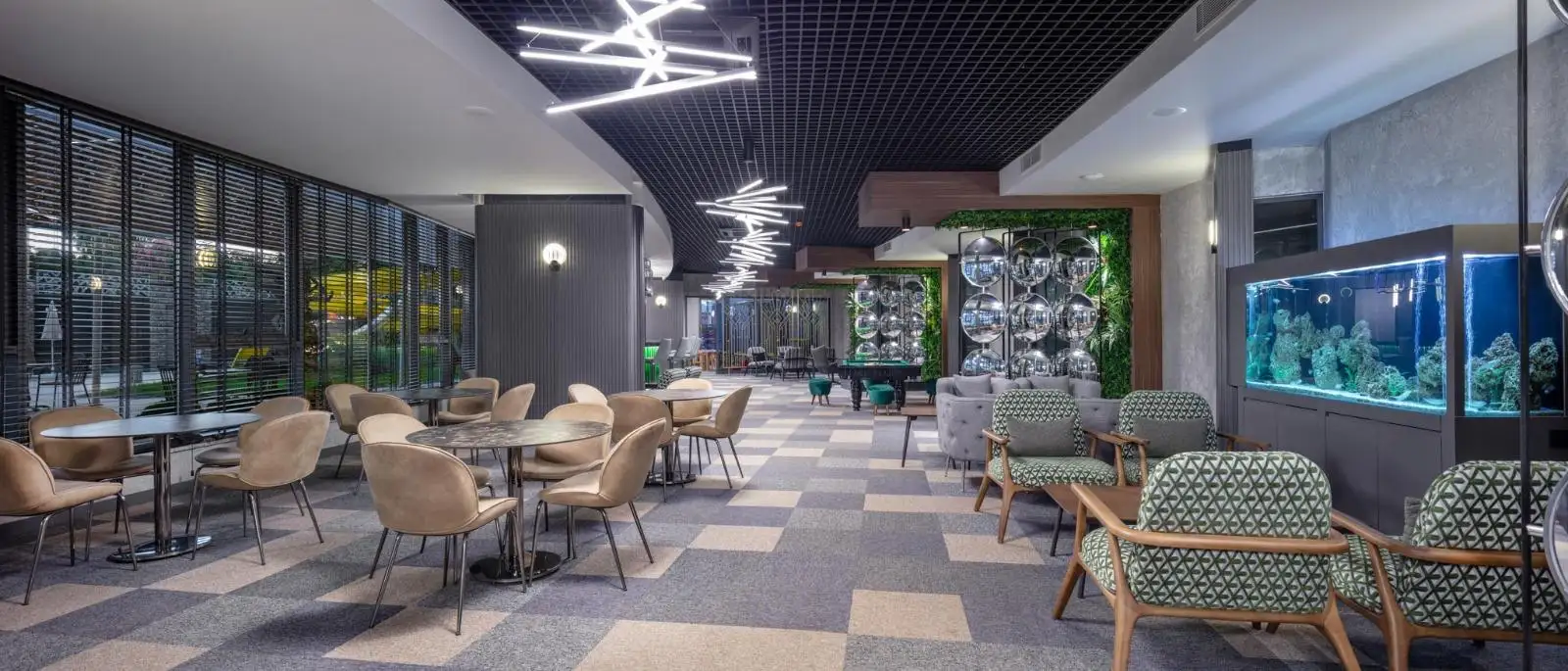 Что в комплексе: Комплекс премиального уровня с инфраструктурой формата пятизвёздочного отеля. Здесь есть открытый и крытый бассейны, хамам, сауна, фитнес-зал, джакузи, детские зоны (крытые и открытые), кафетерий, зоны отдыха с беседками и барбекю, Wi-Fi, а также подземный паркинг. Безопасность обеспечивает система видеонаблюдения и круглосуточная охрана.