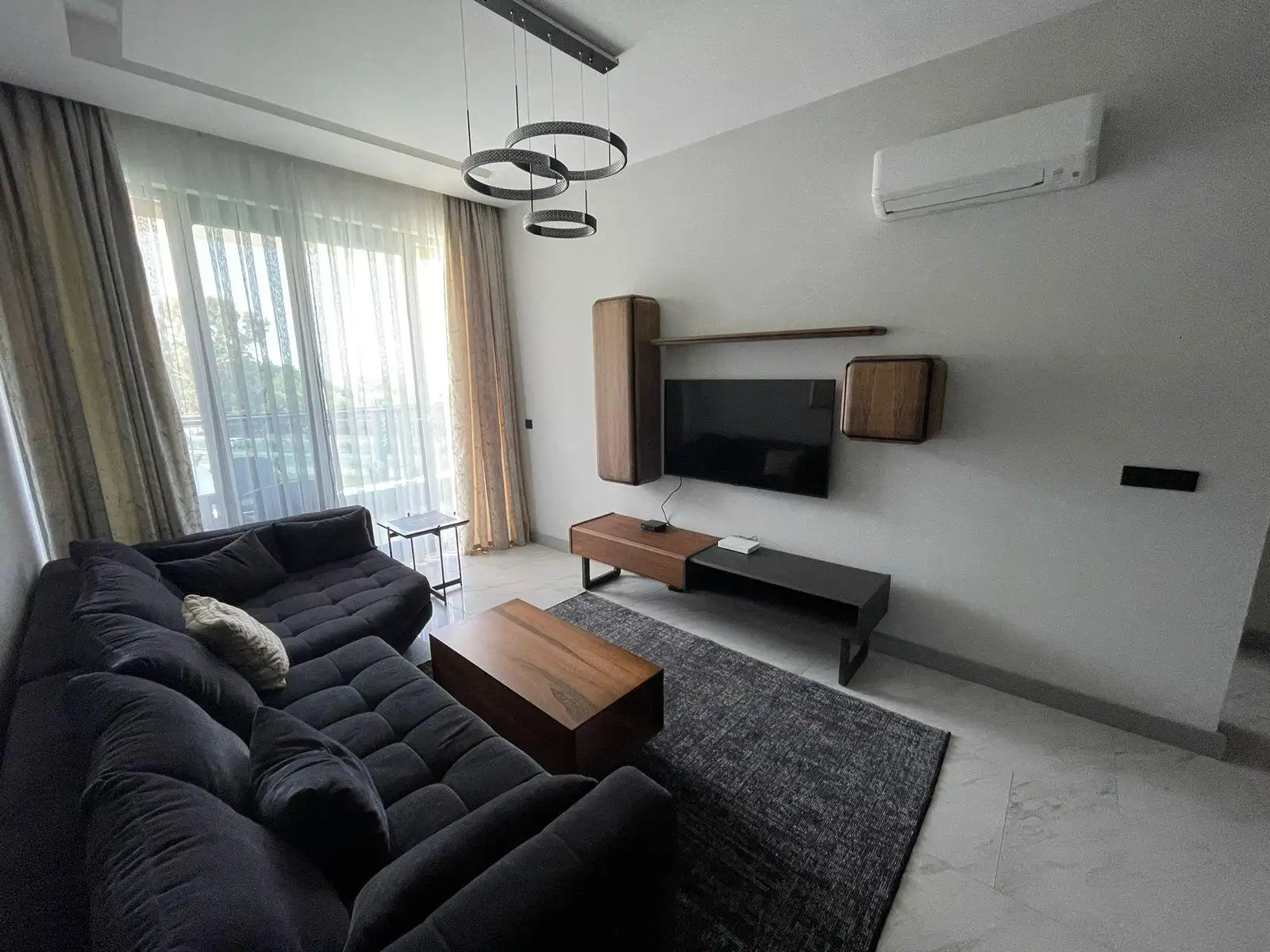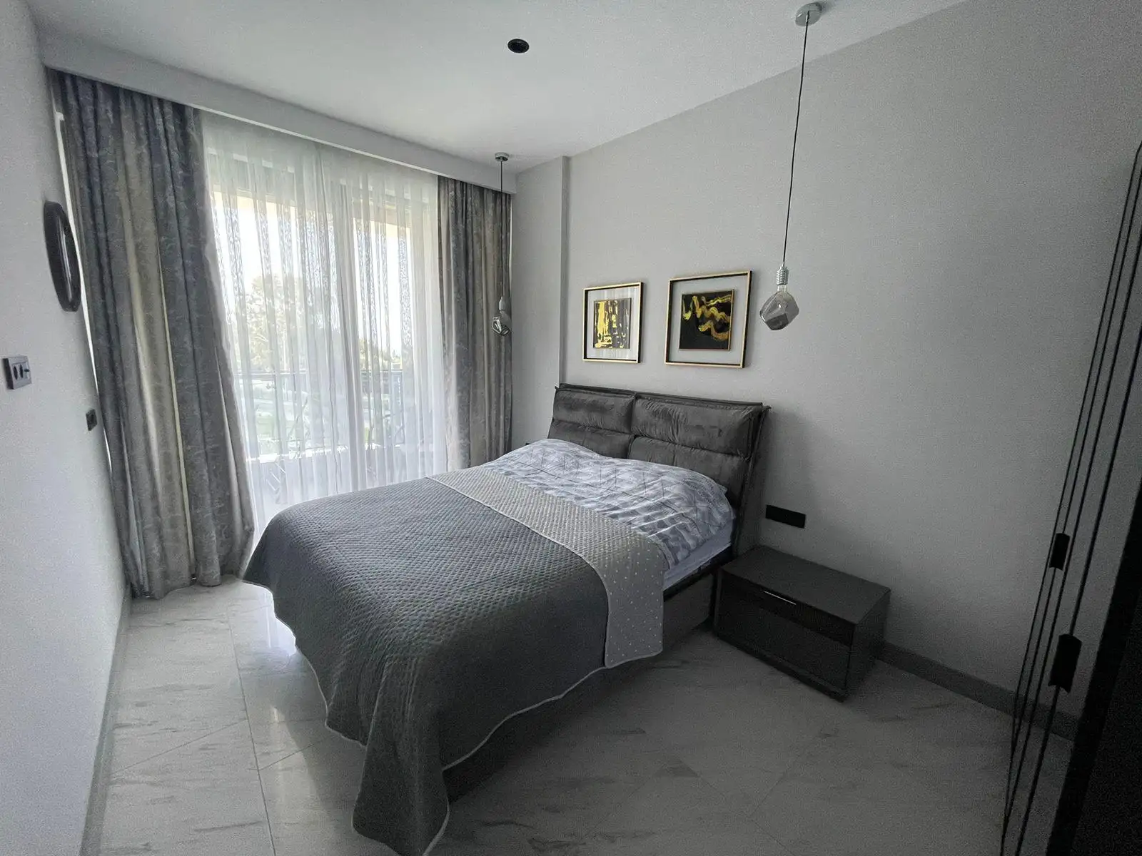 Внутри: Квартира полностью меблирована, техника и бытовые приборы в идеальном состоянии. Интерьер выполнен в современном стиле: светлые стены, тёмные акценты, качественная мебель и аккуратные детали создают ощущение уюта и премиальности. Из гостиной и спальни — прямой вид на море. Ванная комната полностью укомплектована, установлена современная сантехника.