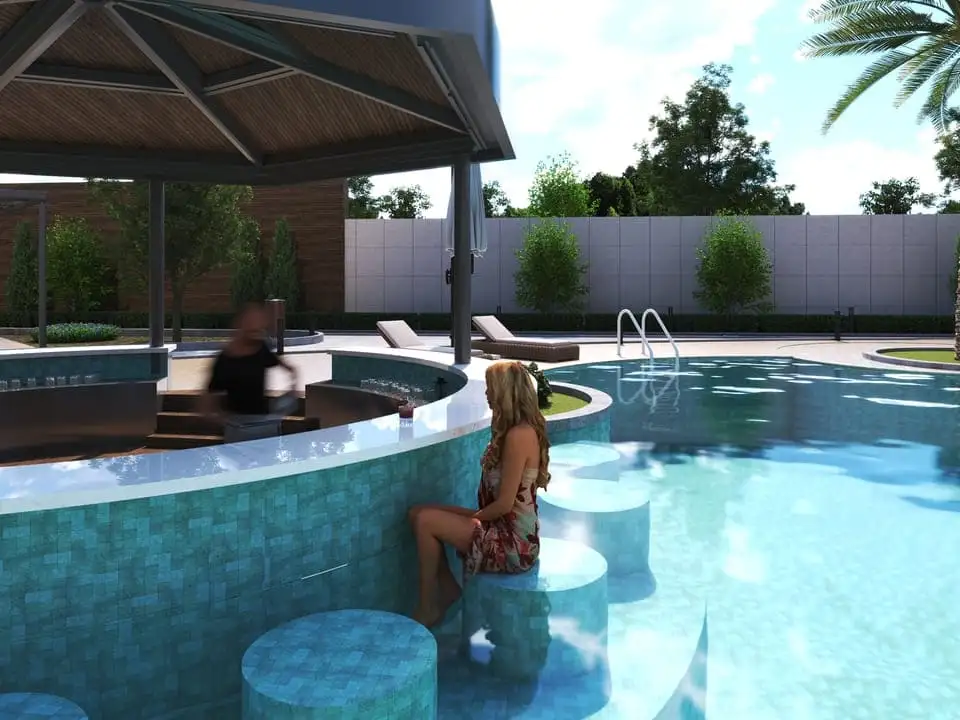 Что в комплексе: На закрытой территории в 5 300,00 м2 расположен один 11-этажный блок, открытый и крытый бассейны, мини клуб, СПА – салон, римская парная, финская сауна, хамам, кинотеатр, фитнес, детская площадка, бар у бассейна, спортивные дорожки. На территории комплекса будет расположена открытая парковка на 70 парковочный мест.