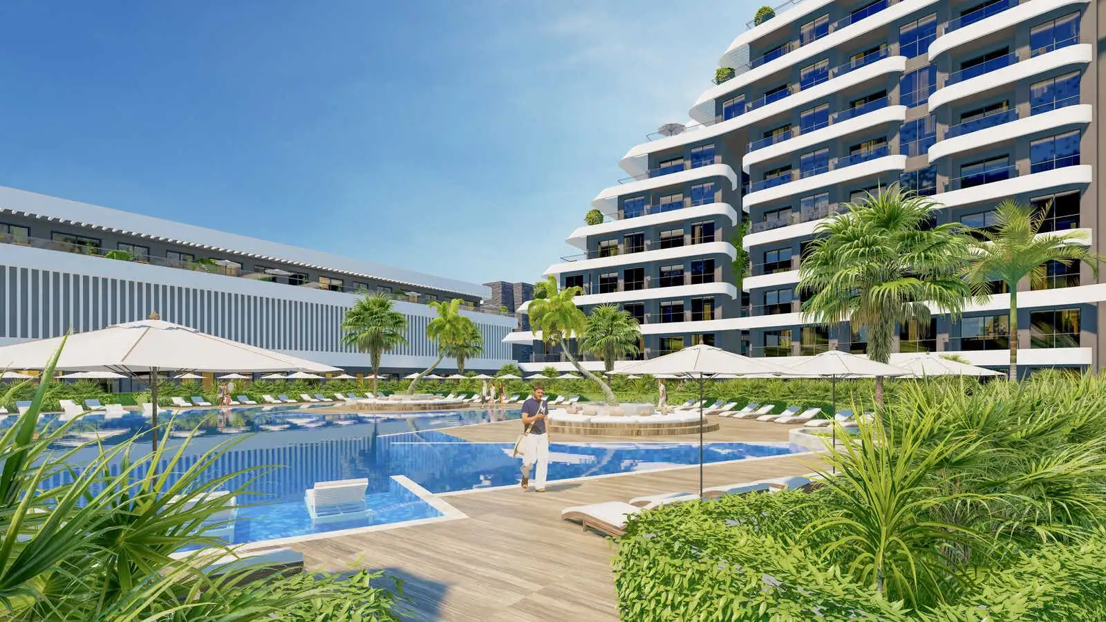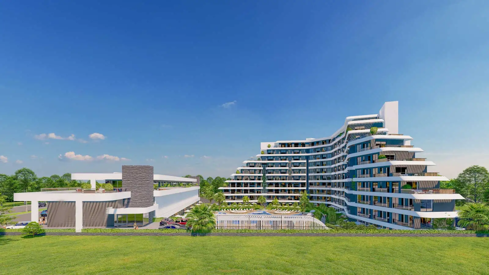 Что в комплексе: Комплекс разработан лучшими архитекторами и дизайнерами Турции. На закрытой территории в 11 001, 00 м2 будет расположен один большой 8-этажный блок уникального дизайна, открытый бассейн, детский бассейн, водные горки, бар у бассейна, детская площадка, пешеходные дорожки, беседки для отдыха, зона отдыха и барбекю, открытая парковка, крытый бассейн, конференц-зал, библиотека, игровая комната, боулинг, бильярд, дартс, настольный футбол, кинотеатр, мини-клуб, хамам, финская сауна, фитнес, парная комната, соляная комната, массажные комнаты, крытая парковка, генератор. В комплексе будет предусмотрен трансфер к морю и бесплатный вход на пляж, по VIP картам.