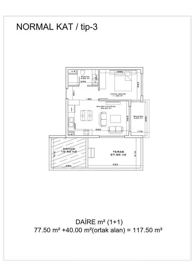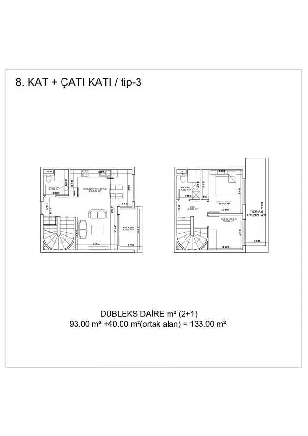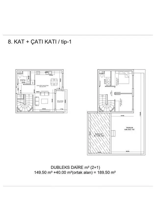 2+1 пентхаусы площадью от 92,5 м² до 149,5 м²;