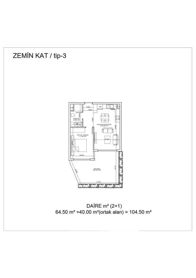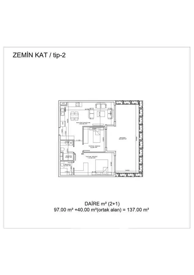 2+1 с выходом в сад площадью от 97 м² до 100,5 м²;