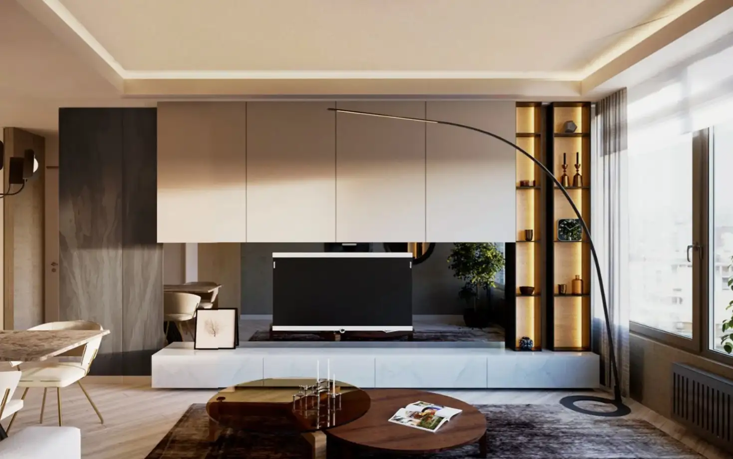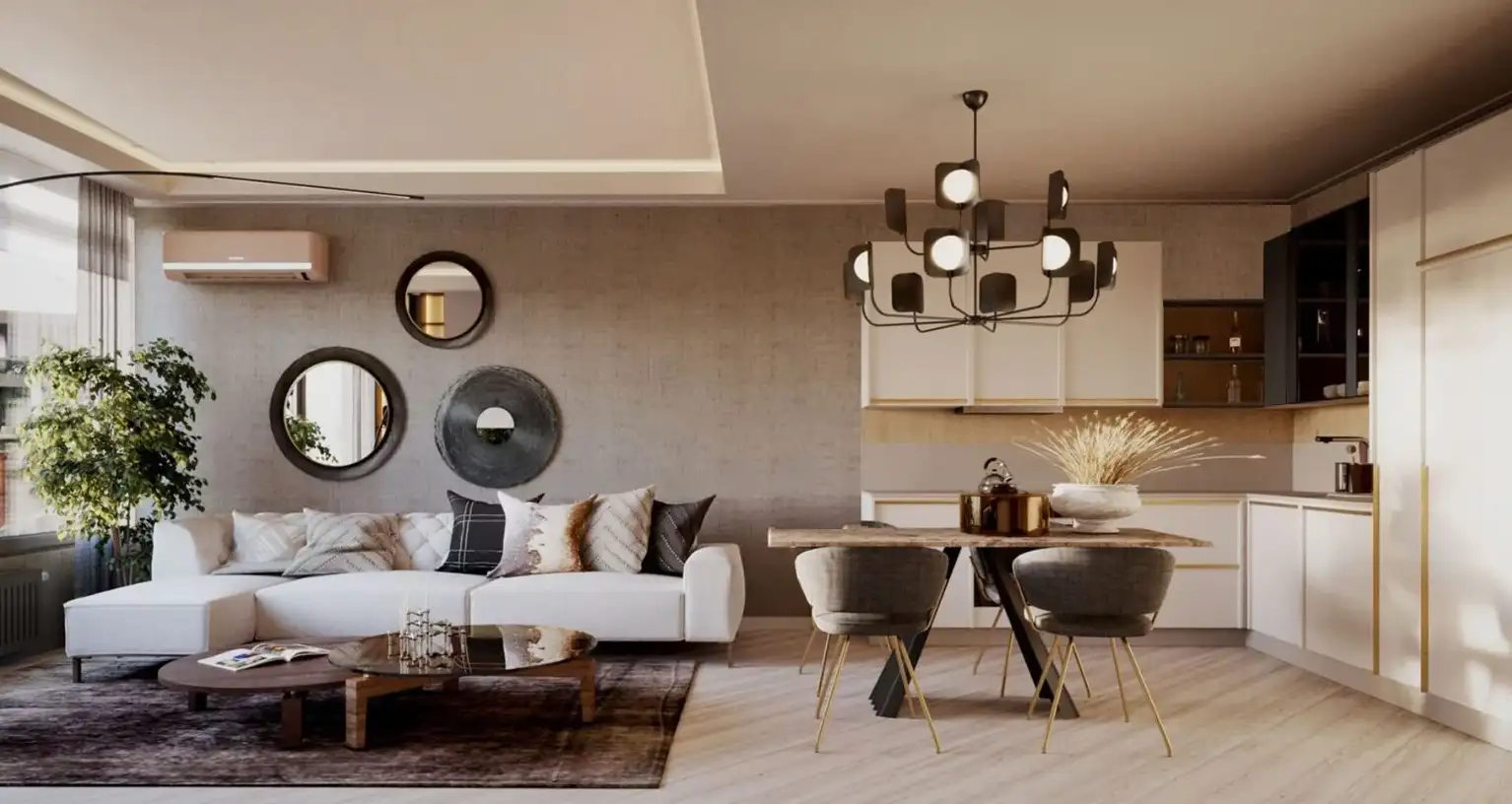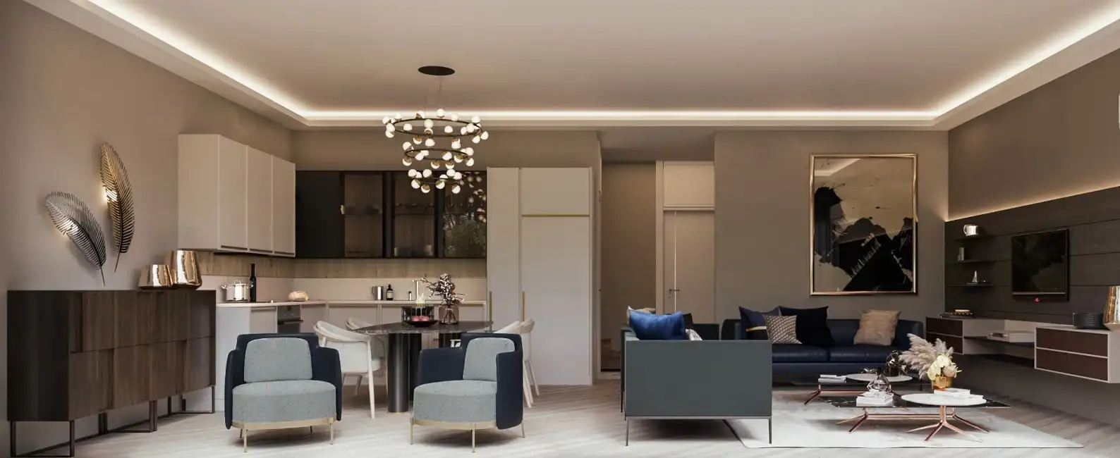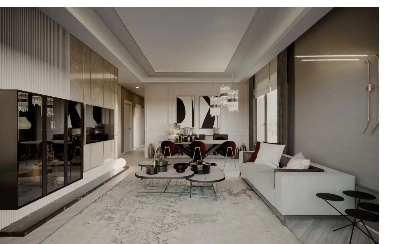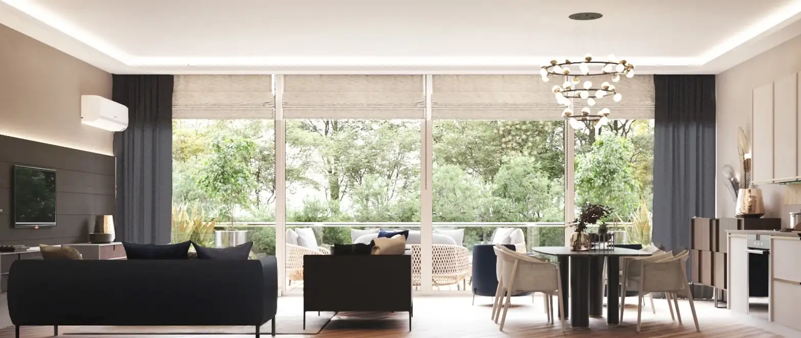 Внутри: Проект предлагает 1069 апартаментов различных планировок, включая 1+1 (57м2), 2+1 (82м2), 3+1 с отдельной кухней (123м2) и 4+1 с отдельной кухней (165м2). Все квартиры сдаются в полной чистовой отделке премиум-класса, с газовым отоплением и встроенной бытовой техникой.