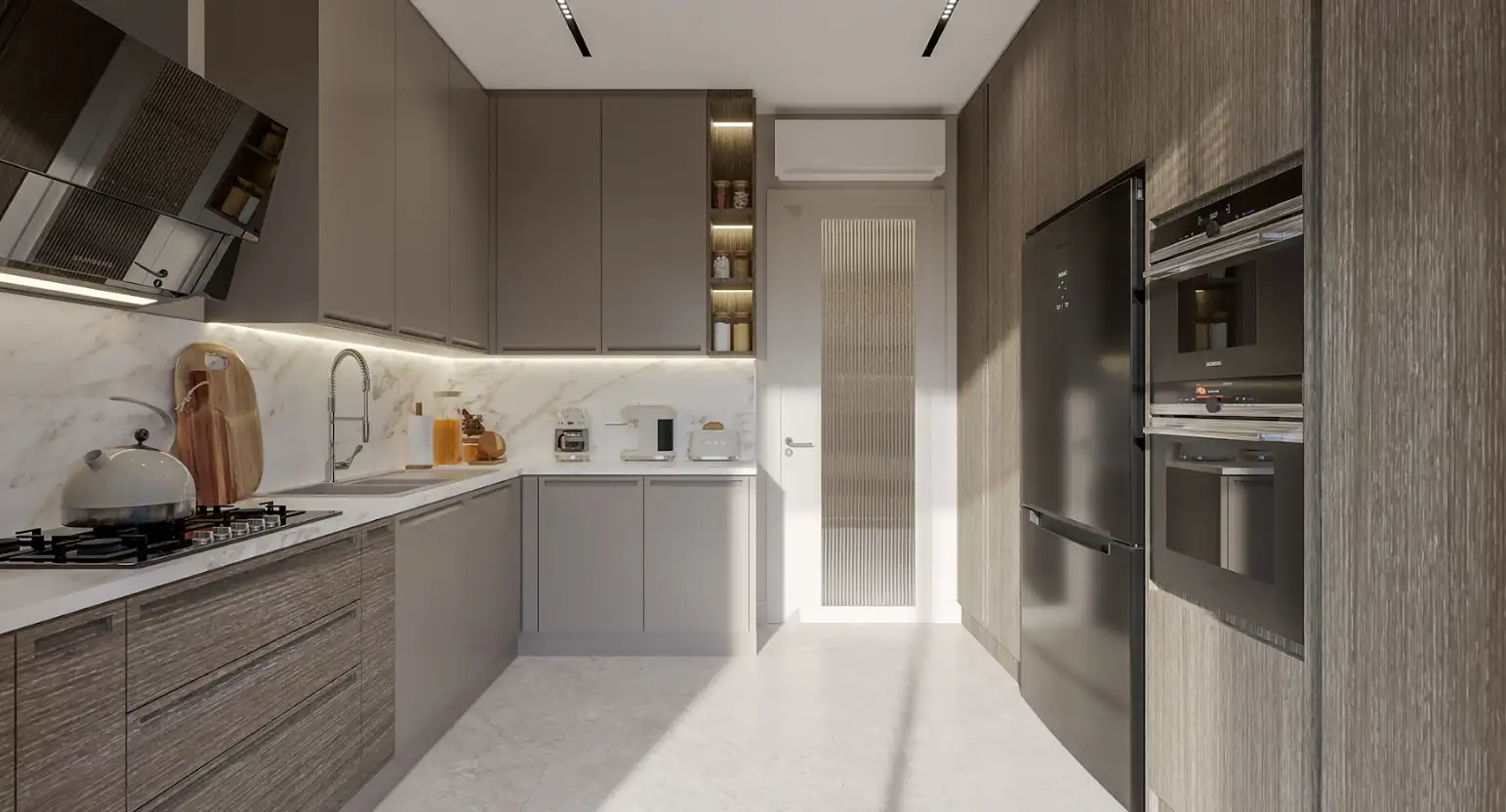 Все помещения будут сданы с чистовой отделкой, полностью отделанной плиткой и обустроенной сантехникой ванной комнатой, где также будет установлена система подогрева пола. В каждой квартире будет установлена модульная кухонная мебель, встроенная кухонная техника, стальная бронированная дверь, окна ПВХ с двойным остеклением, домофон.