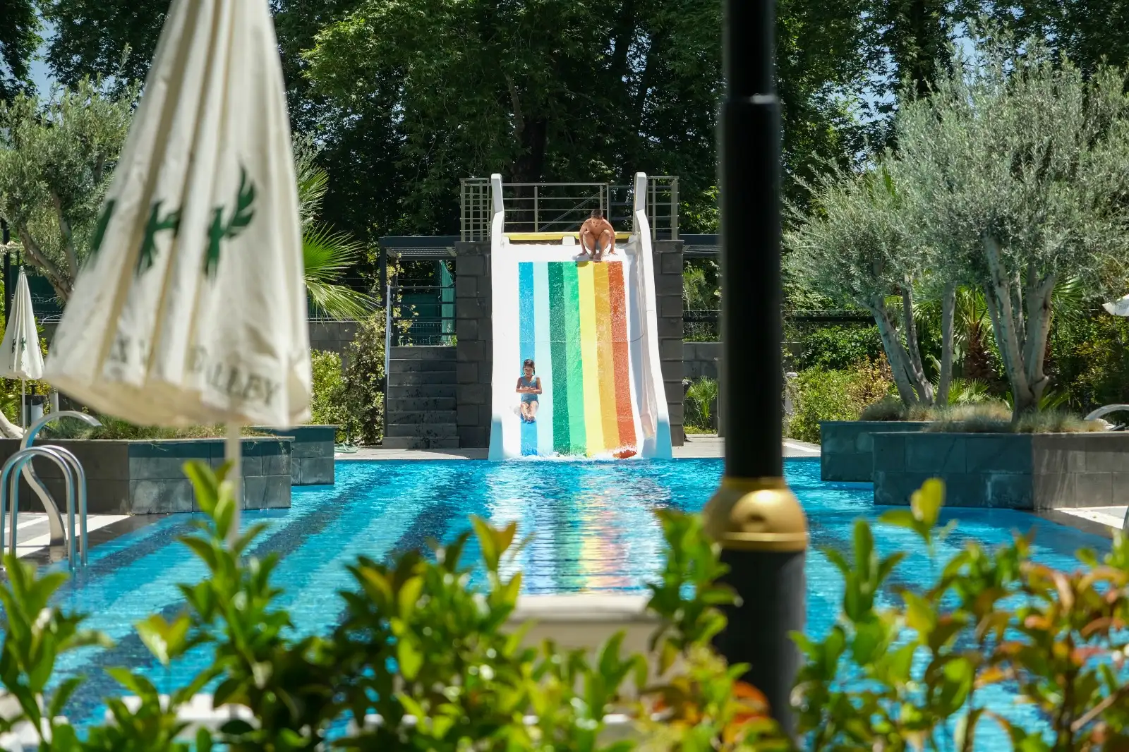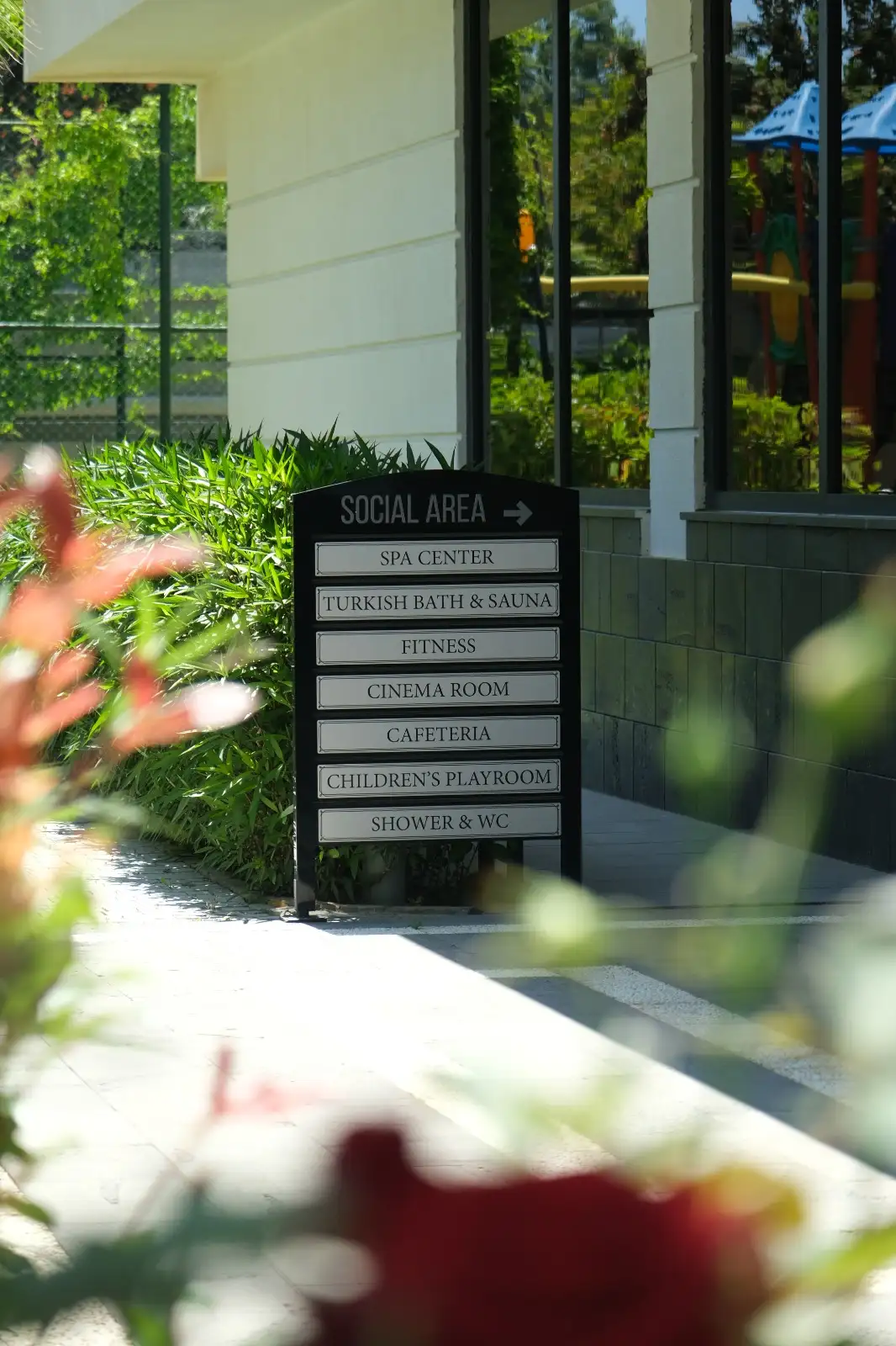 Что в комплексе: Комплекс занимает территорию площадью 7100 квадратных метров. На просторной территории расположено пять 4-этажных, жилых блоков, открытая парковка на 62 авто, теннисный корт, открытый бассейн с зоной отдыха, детским бассейном и водной горкой, детская площадка, зона барбекю, спортивная площадка, а внутри комплекса имеется кинотеатр, детская комната, фитнес центр, римская парная, турецкий хамам, финская сауна, массажные кабинеты, джакузи.