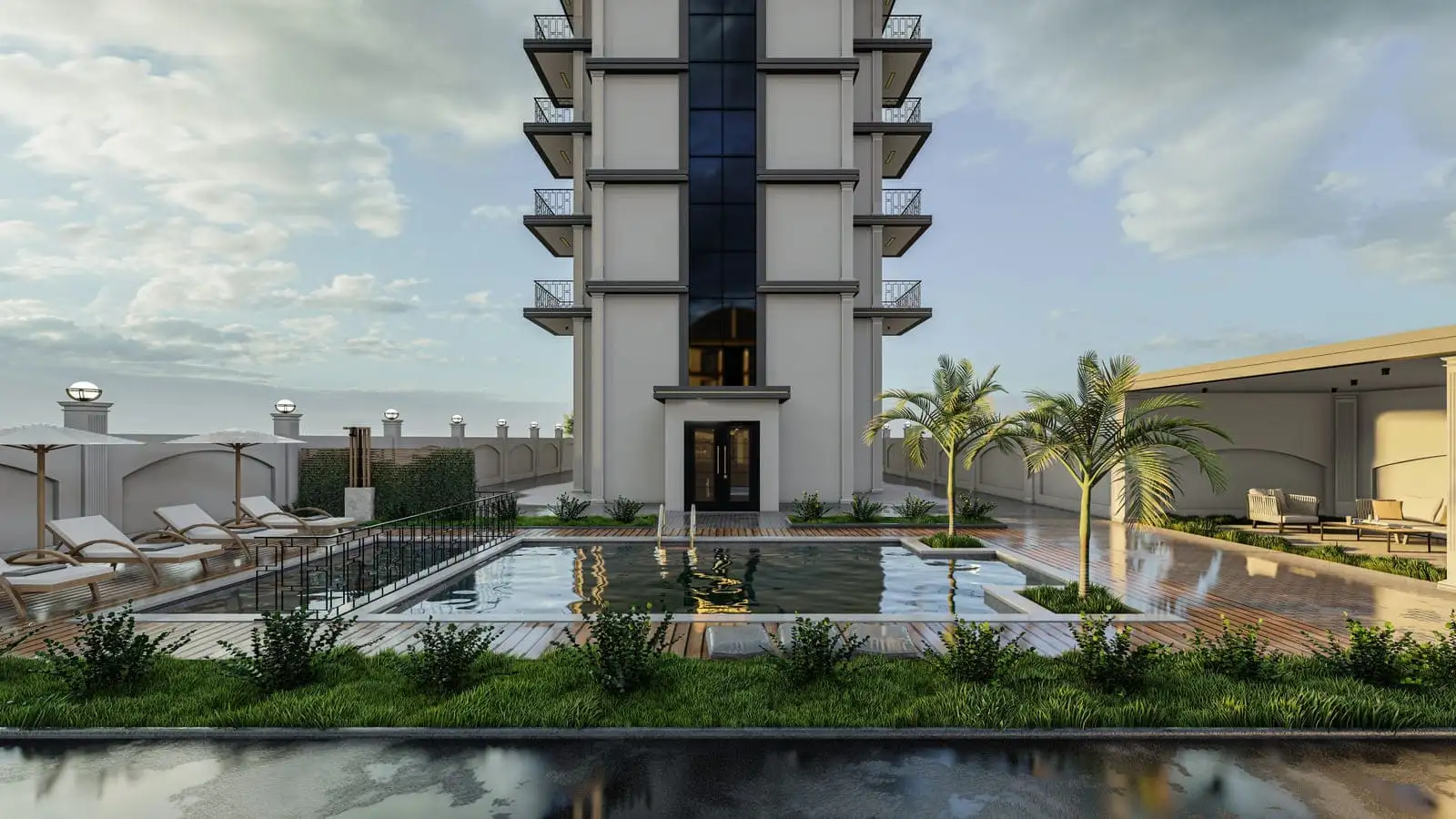 Что в комплексе: На закрытой территории площадью 1 131 м2 будет расположен 1 жилой блок на 16 квартир. В инфраструктуру комплекса будут входить открытый и детский бассейны, зона отдыха и барбекю, открытая парковка.