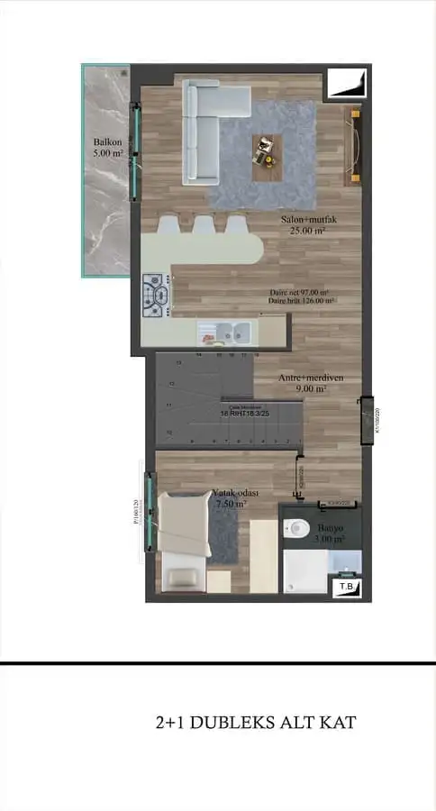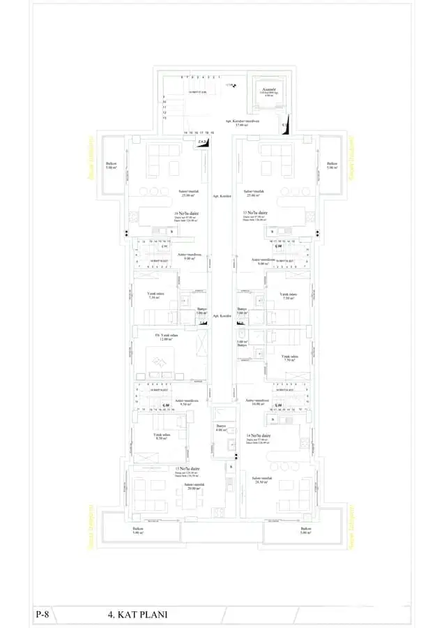 3+1 пентхаусы площадью 126 м2;