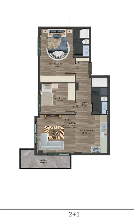 2+1 площадью 81 м2;