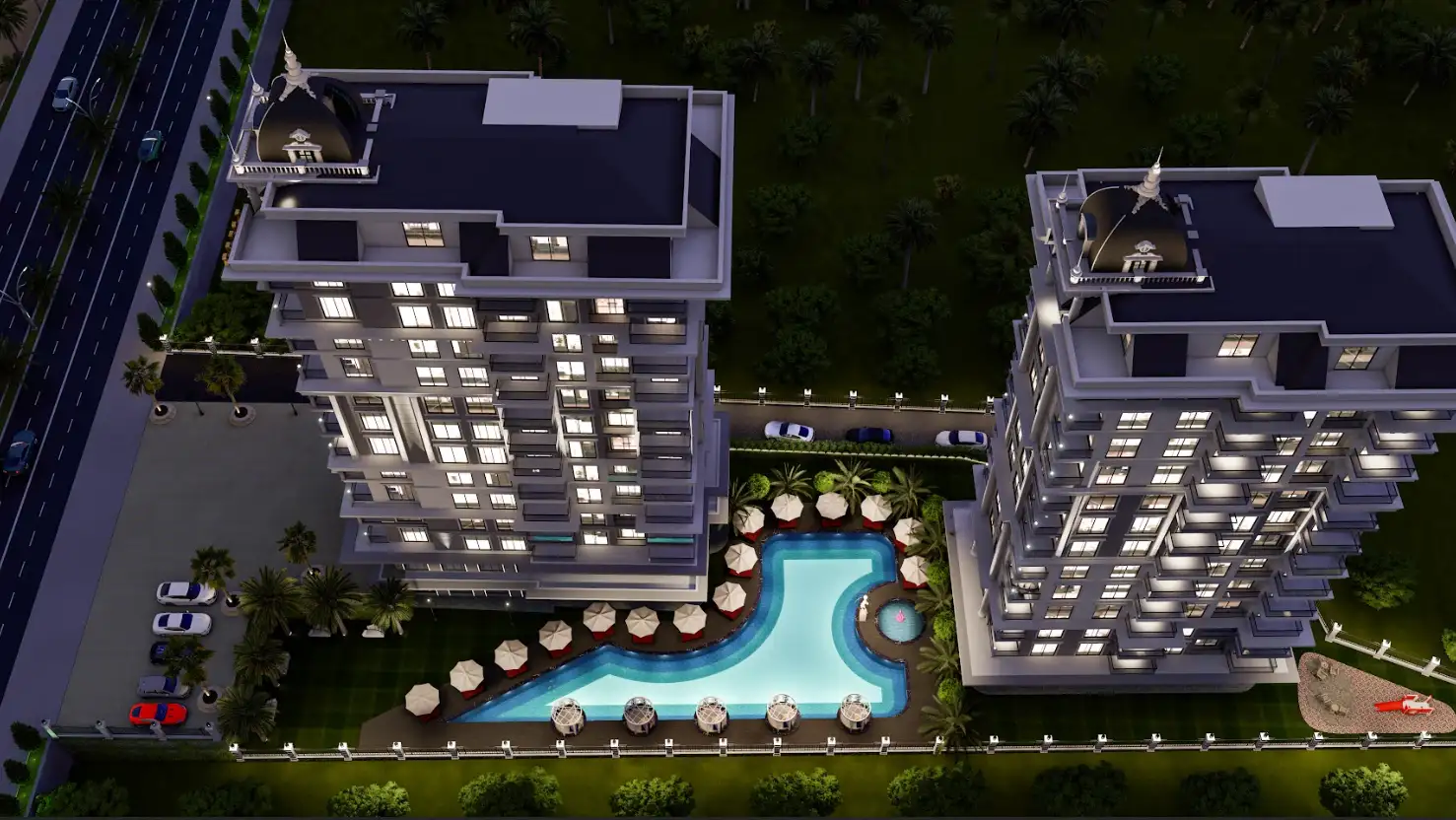 Что в комплексе: В комплексе, состоящем из 2х блоков запланирована максимальная инфраструктура- открытый паркинг, сауна, хамам, открытый и крытый бассейны, детская игровая, кинотеатр, зона BBQ.