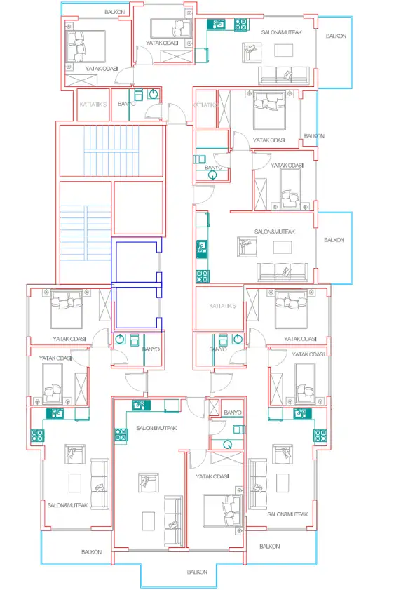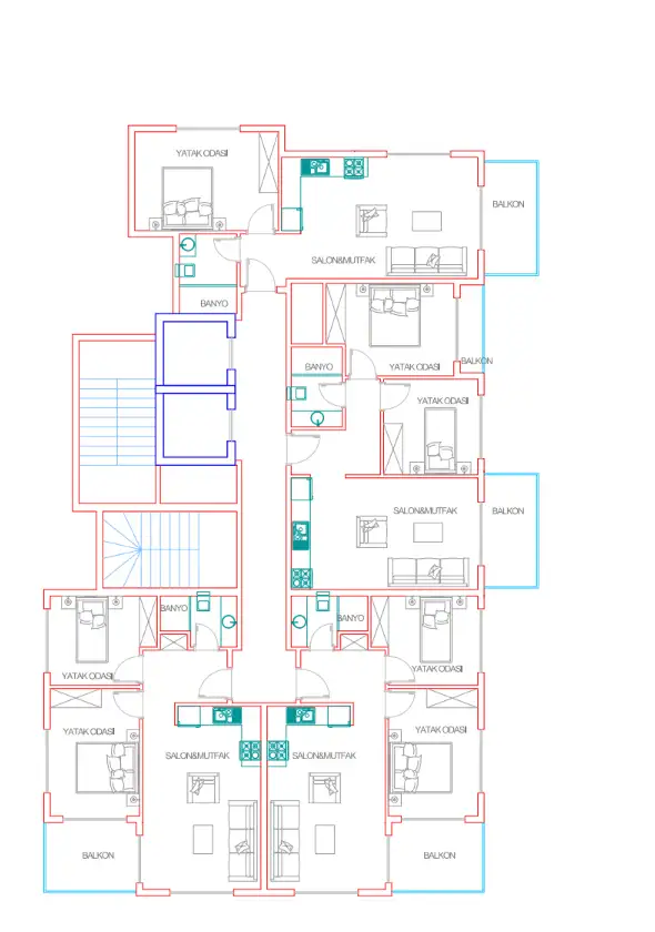 Внутри: В продаже имеются квартиры следующих планировок- 1+1 площадью 62 м2, 2+1 площадью 98 м2, 2+1 пентхаус площадью 122 м2, 3+1 площадью 163 м2.