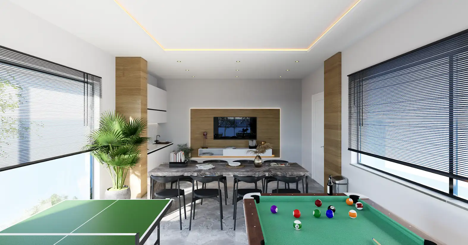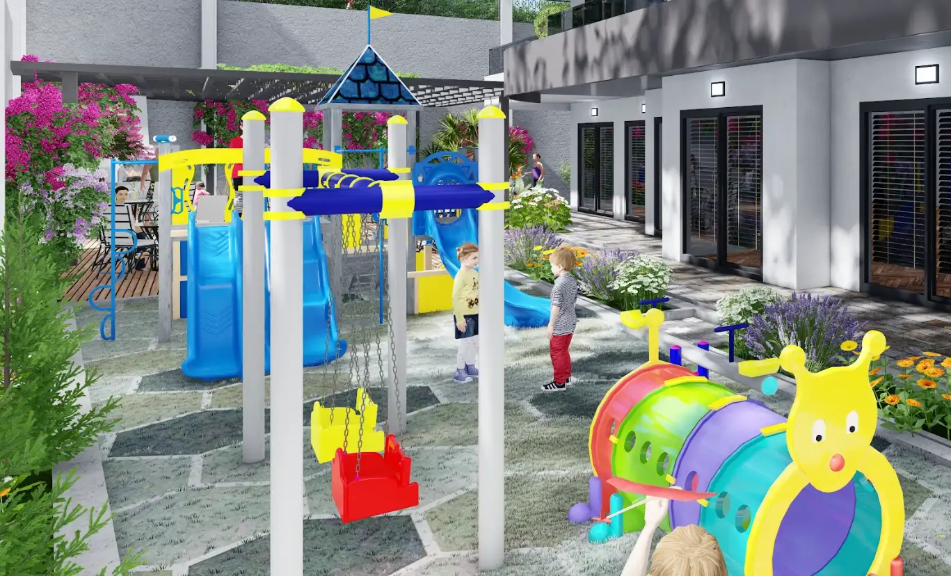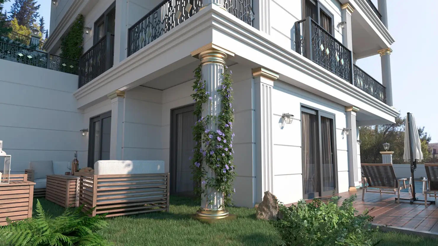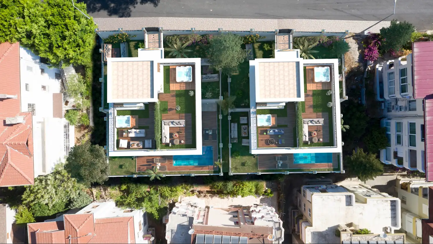 Что в комплексе: На территории комплекса, общей площадью 1975 квадратных метров, будут представлены 6 двухэтажных блоков в формате таунхаус и одна вилла в стиле Османской империи. Инфраструктура комплекса включает открытый плавательный бассейн, парковку для автомобилей, детскую игровую площадку, миниклуб, кинотеатр, сауну и фитнес-зал.