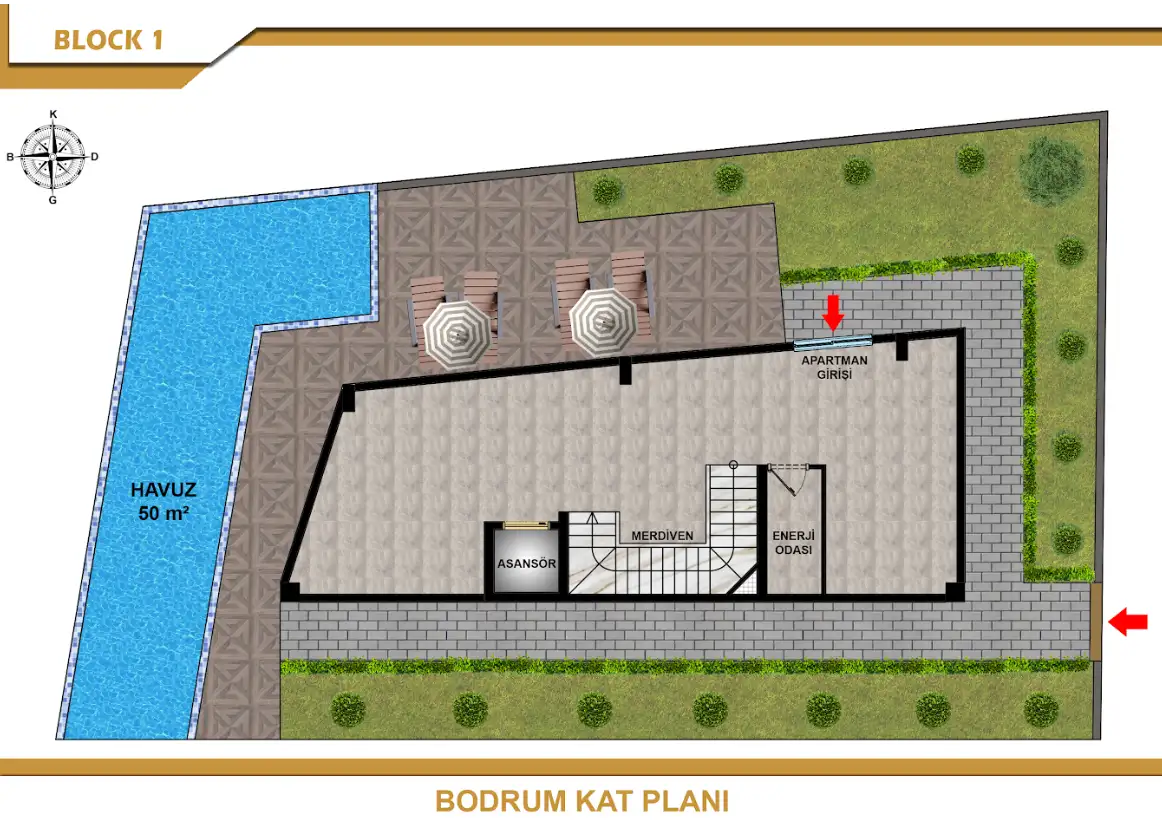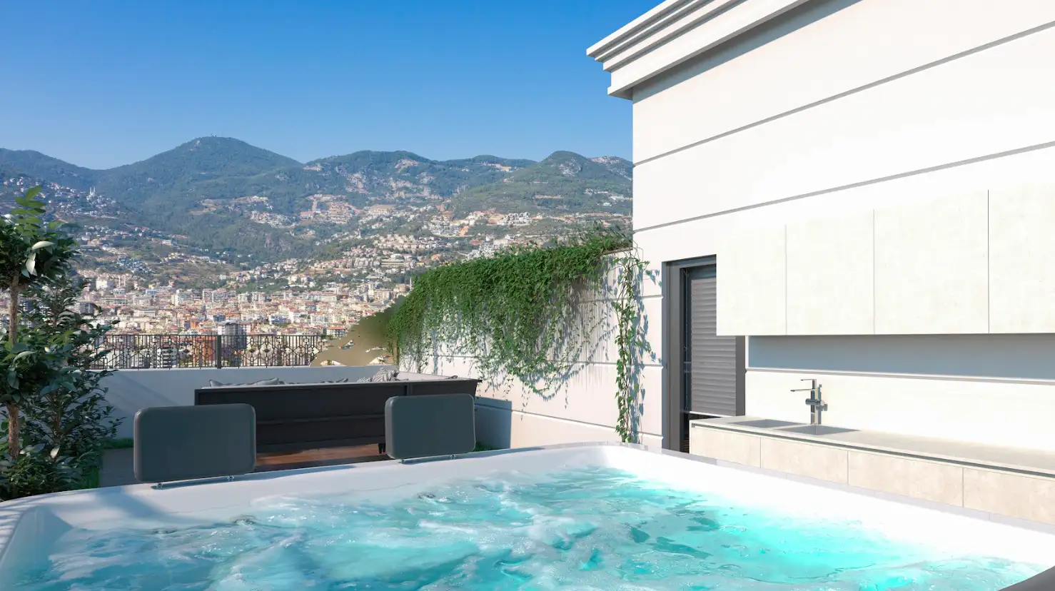 Внутри: В комплексе представлены апартаменты разных планировок: 1+1 с собственным садом, 1+1 с собственной террасой на крыше с джакузи и зоной барбекю, 2+1 с собственным садом и 2+1 линейные с террасой на крыше и автономная вилла планировки 3+1. Все квартиры сдаются в полной чистовой отделке премиум класса под ключ, с установленной бытовой техникой от компании Siemens, системой "умный дом", полами с подогревом и кондиционерами. Важно отметить, что все квартиры подходят под условия получения турецкого гражданства.