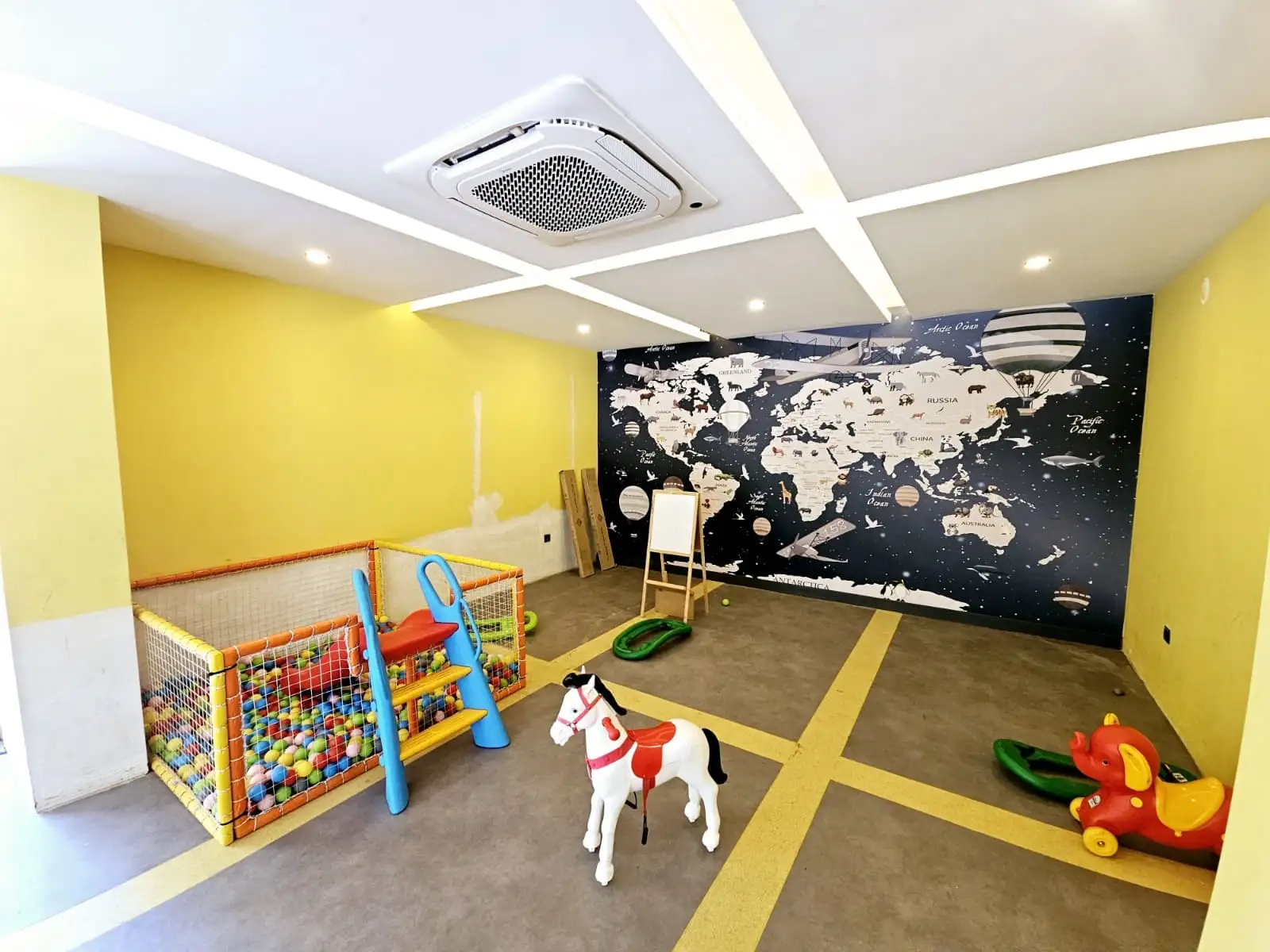 Что в комплексе: Небольшой комплекс состоит из двух аккуратных жилых блоков и предлагает всё необходимое для комфортной жизни: открытый и крытый бассейны, сауна, тренажёрный зал, детская комната и площадка, зелёная зона для отдыха, барбекю с беседками, а также водная горка у бассейна. На территории — открытая парковка и ухоженный сад.