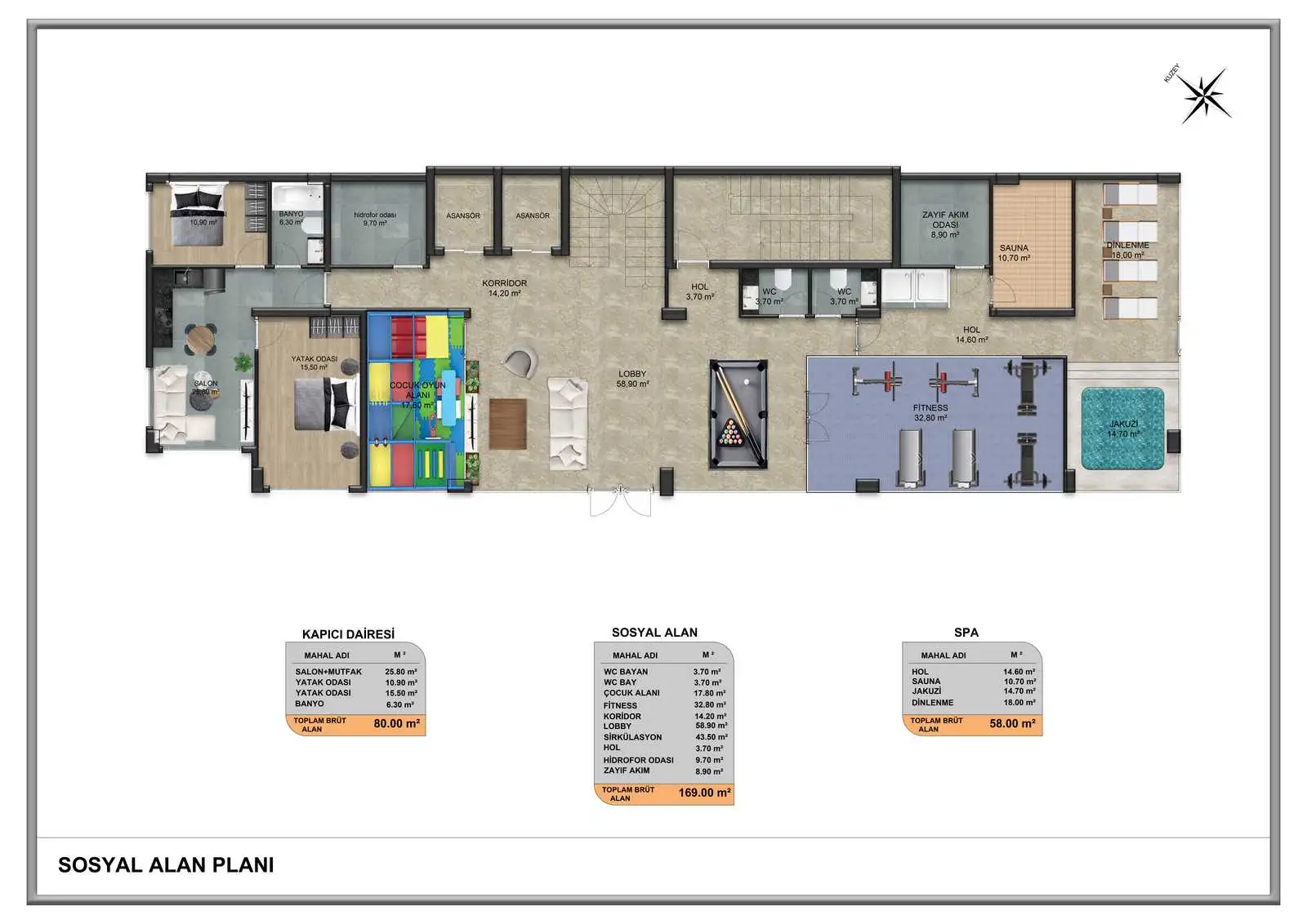 В комплексе предусмотрены следующие удобства: бассейн, тренажерный зал с профессиональным оборудованием, джакузи, сауна, детская игровая площадка, детский клуб, зона барбекю, бильярд, мини гольф, охрана, парковка.