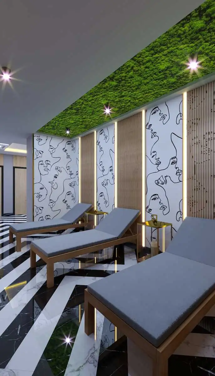 Внутренняя инфраструктура комплекса будет включать открытый плавательный бассейн, детский бассейн, зону отдыха на открытом воздухе у бассейна, детскую площадку, зону барбекю, тренажерный зал, зону спа с сауной, турецкой парной комнатой, массажной комнатой, крытый бассейном, игровую комнату, парковку.;