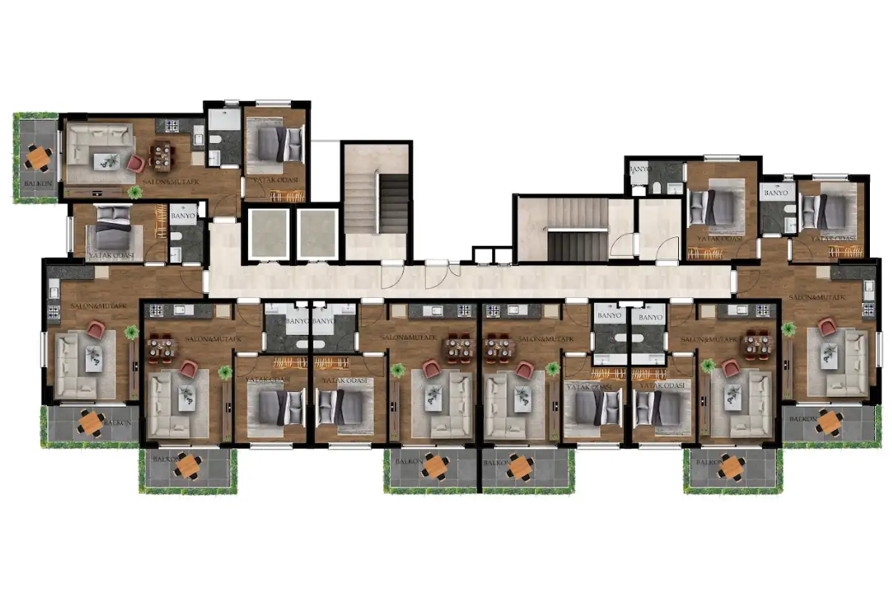 Что вы получаете: Новый роскошный проект жилого комплекса в шаговой доступности к морю, сочетающийся с природной красотой Алании, в районе Тосмур.