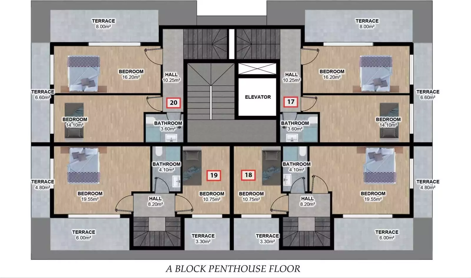 пентхаус планировкой 4+1, с площадью 150 м2.