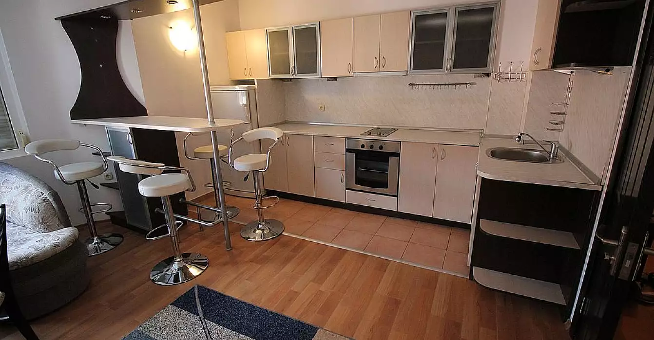 В активный фонд агентства недвижимости Болгарский Дом поступила отличная двухкомнатная квартира со свежим стилистическим решением, комплексной меблировкой, полным комплектом функциональной техники. Это – апартамент, который находится в Равде, в комплексе Элитония 1. Площадь квартиры – 64 кв. м., она находится на третьем этаже. Удачная планировка, удобная прихожая, кухня барного типа, расположенная в гостиной и большая спальня с кроватью. Из окон открывается вид на бассейн. Благоустройство включено в оглашенную стоимость.