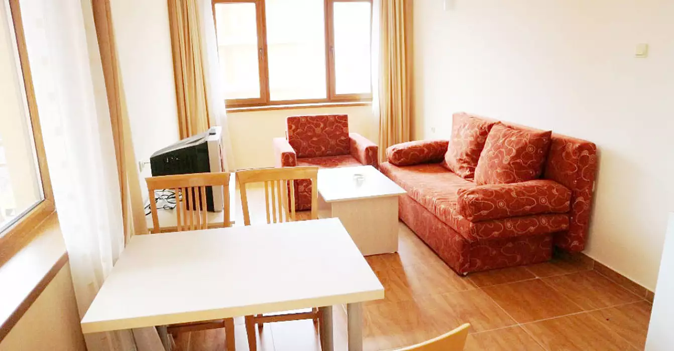 В Солнечном Береге, на втором этаже комплекса Санни Дримс, к продаже стала доступна просторная двухкомнатная квартира, общая площадь которой составляет 71 кв.м. Планировка включает себя гостиную с кухонной зоной, спальню с двуспальной кроватью, ванную комнату и балкон, выходящий на внутренний двор и бассейн. Эта квартира – отличный выбор для постоянного проживания, мебель и техника остаются новым хозяевам.