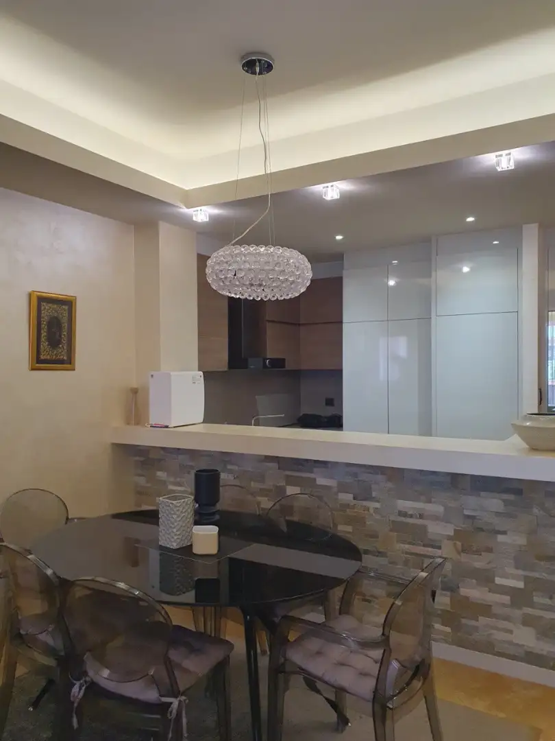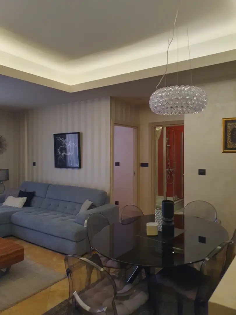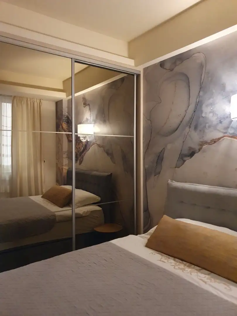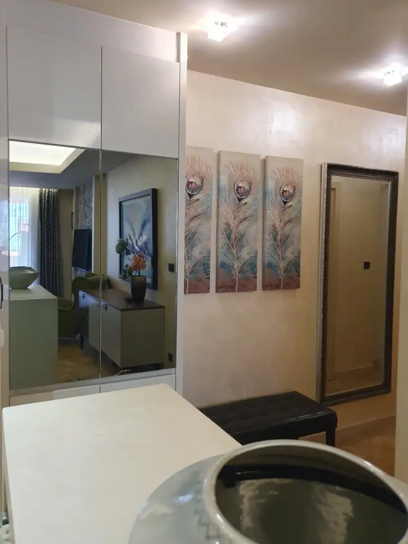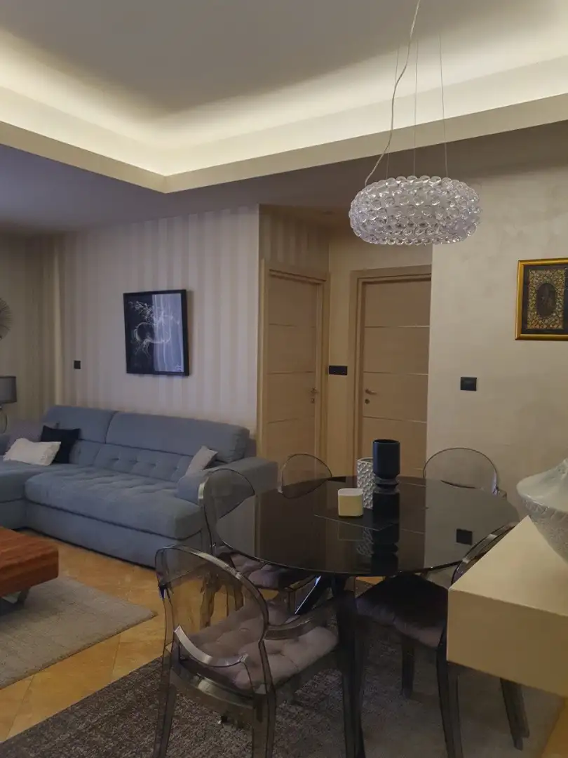 Квартира полностью укомплектована мебелью и бытовой техникой. Подогрев пола по всей квартире. Климат контроль.