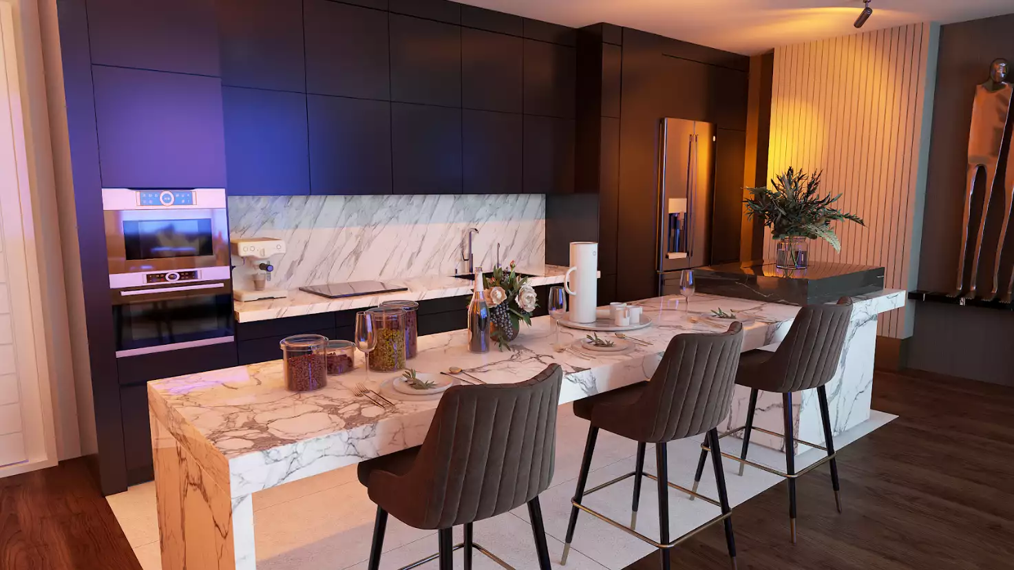 Внутри: Внутри проекта представлены разнообразные планировки, включая апартаменты 1+1 площадью от 69 до 87 квадратных метров, 2+1 с площадью от 68 до 120 квадратных метров, 3+1 площадью 119-241 квадратный метр и 4+1 площадью 210 квадратных метров. Все апартаменты сдаются в полной чистовой отделке премиум класса, с встроенными шкафами и современной сантехникой.