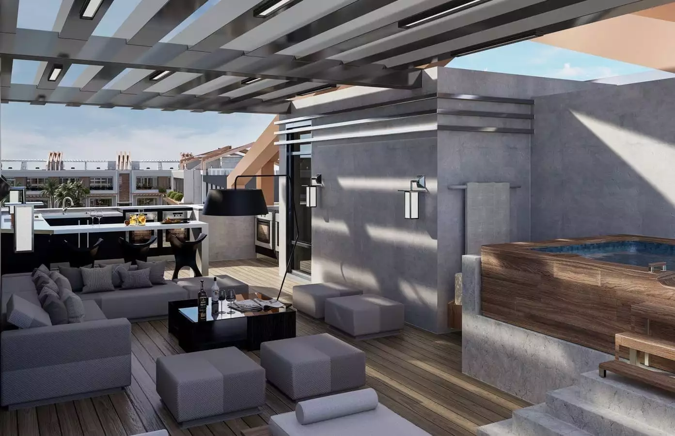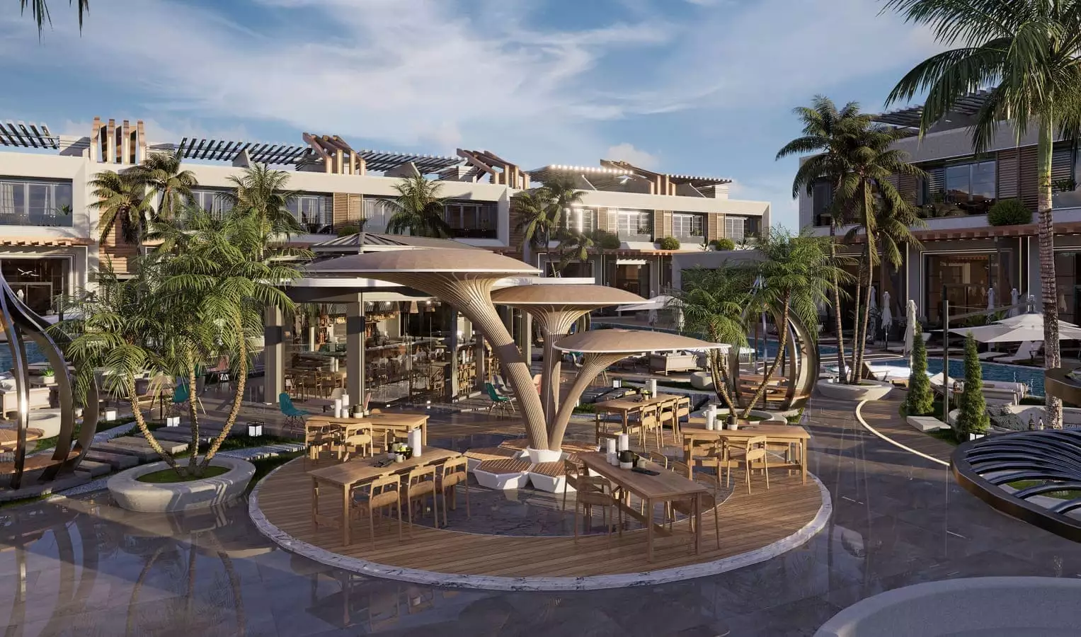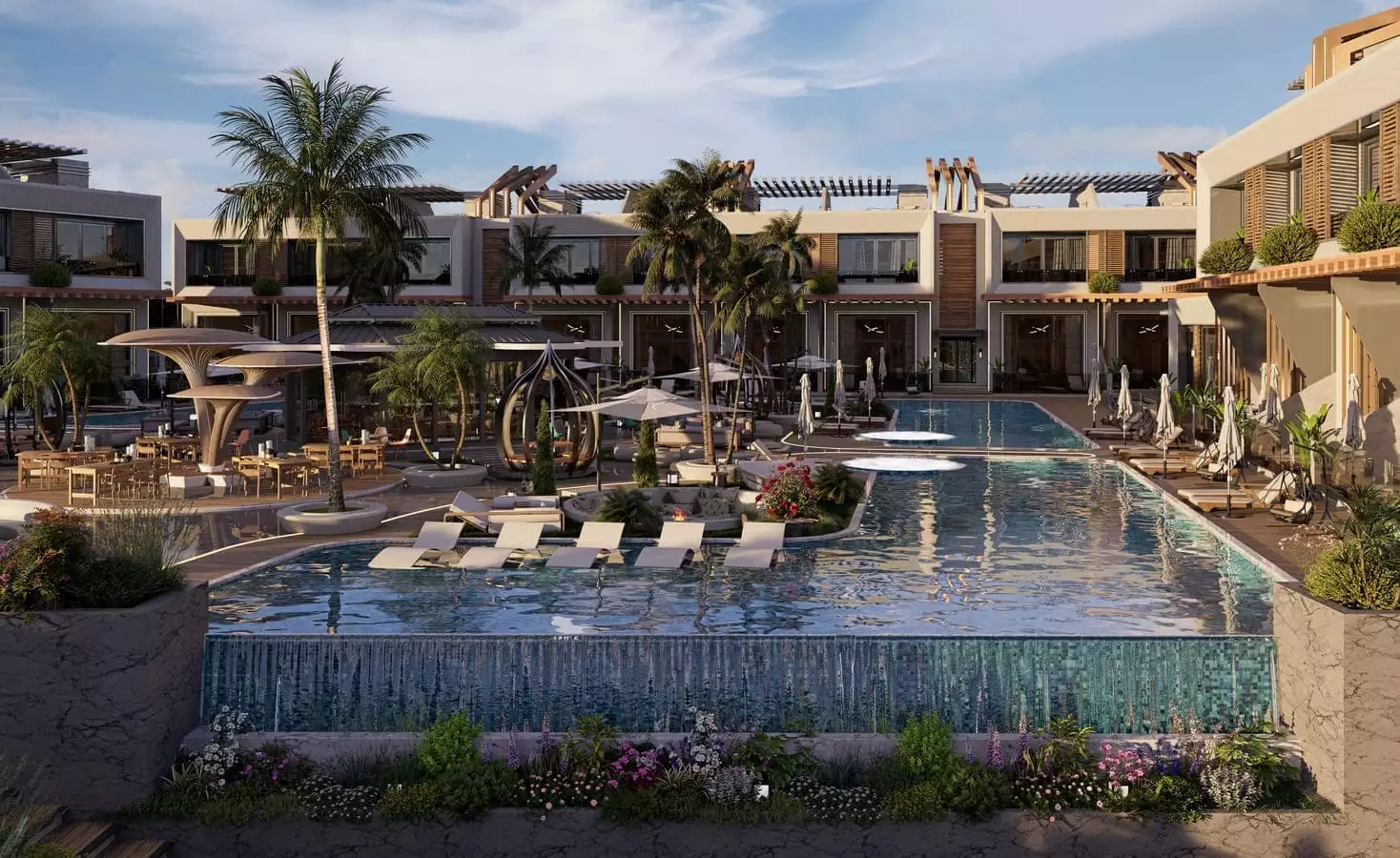 Что в комплексе: На закрытой, охраняемой территории комплекса расположены открытые бассейны, джакузи, зона отдыха у бассейна, бар у бассейна, лобби-бар, беседки для отдыха, детские площадки, прогулочные дорожки, теннисный корт, ресторан и кафе, кинотеатр, фитнес – центр, открытая парковка.