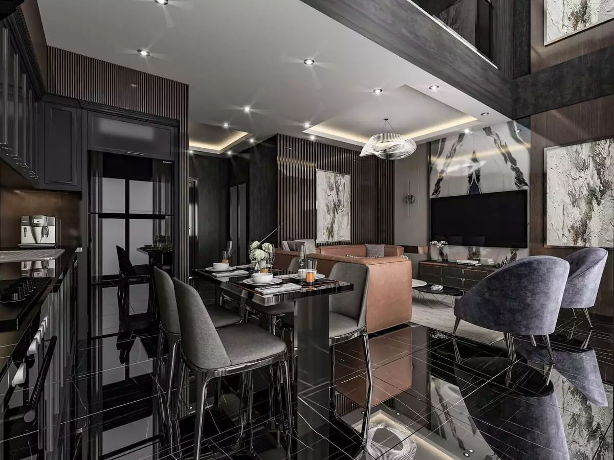 Внутри: К продаже доступны апартаменты 1+1 площадью 55 м2 и 2+1 лофт площадью 80 м2.