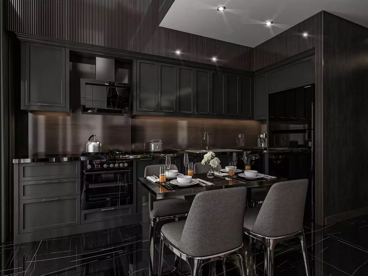 Апартаменты сдаются в чистовой отделке, со встроенным кухонным гарнитуром, шкафами и с оборудованными санузлами.