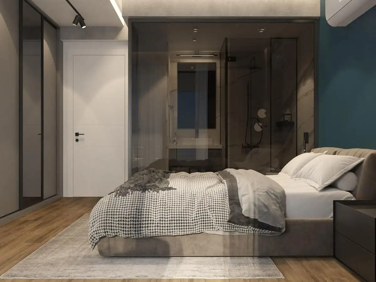 Апартаменты сдаются в полной чистовой отделке, с кухонным гарнитуром, встроенными шкафами и оборудованными санузлами.
