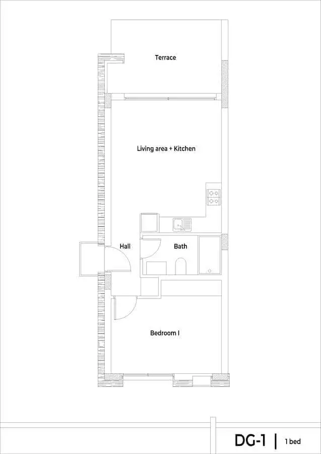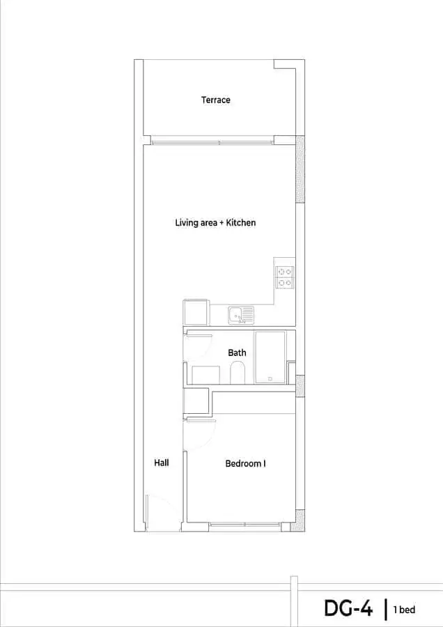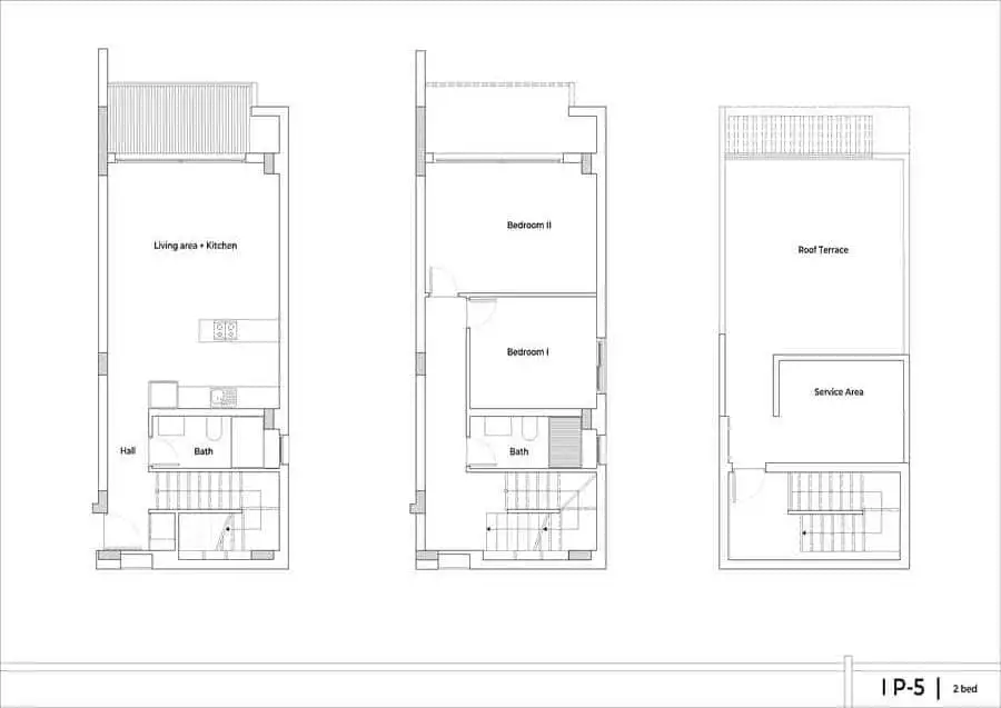1+1 пентхаус площадью 80 м2 с террасой 6 м2 и террасой на крыше площадью 47 м2;