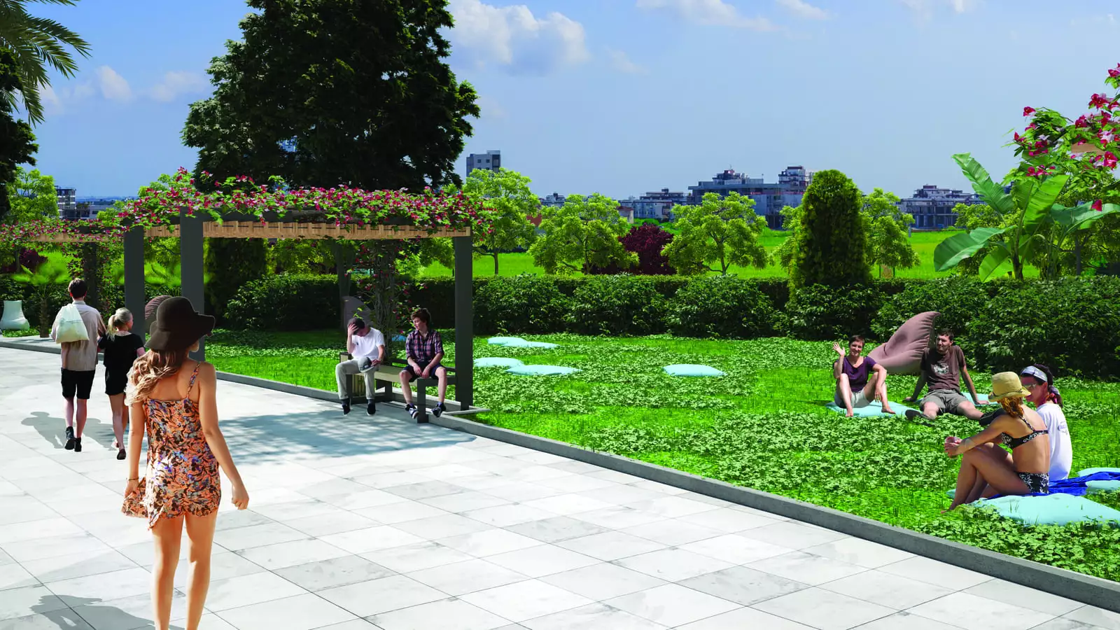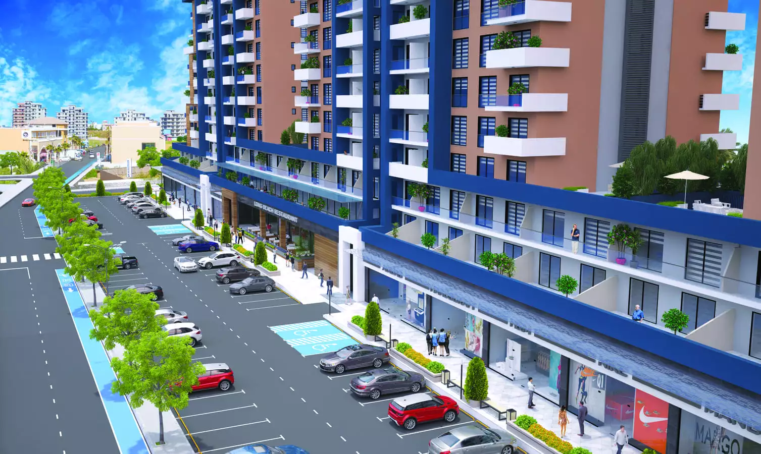 Комплекс будет расположен вблизи района Лонг Бич, с его песчаной береговой линией длиной 3 км и кристально чистой водой Средиземного моря. На набережной есть участки с газонами, пальмы, дополнительные переходы к пляжу, расположены детские площадки установлены тренажёры.