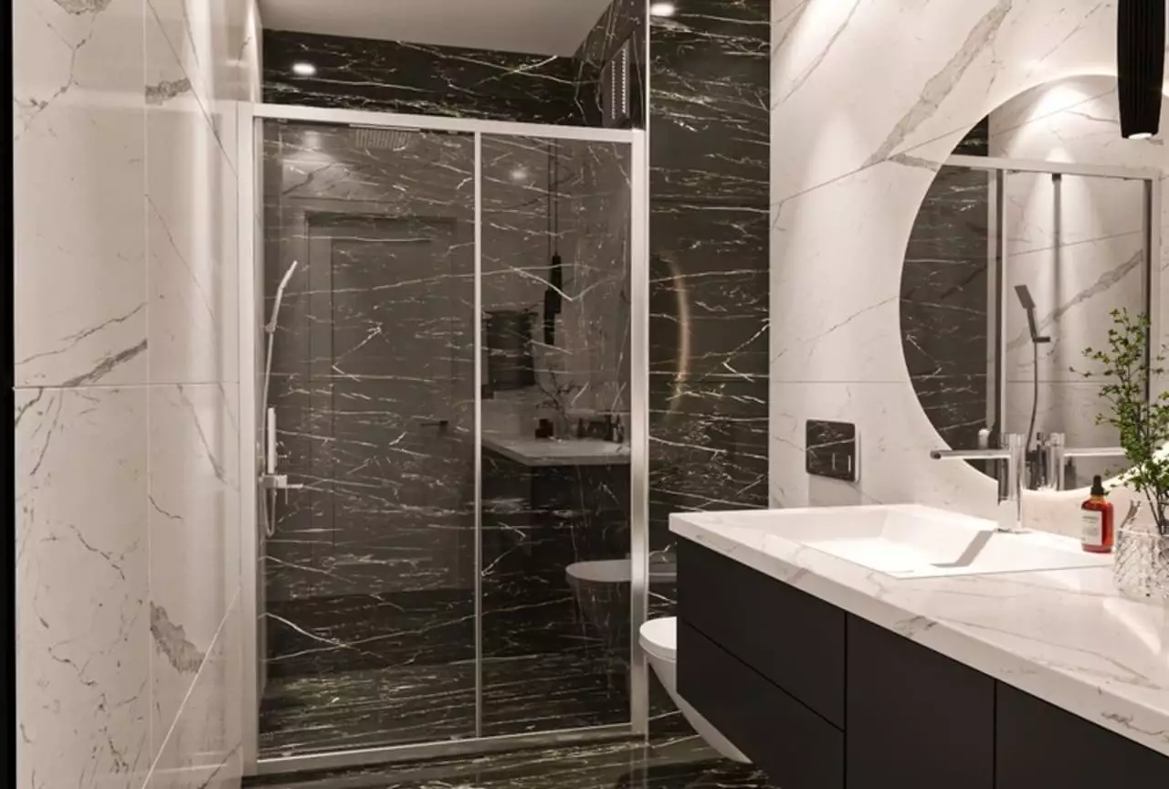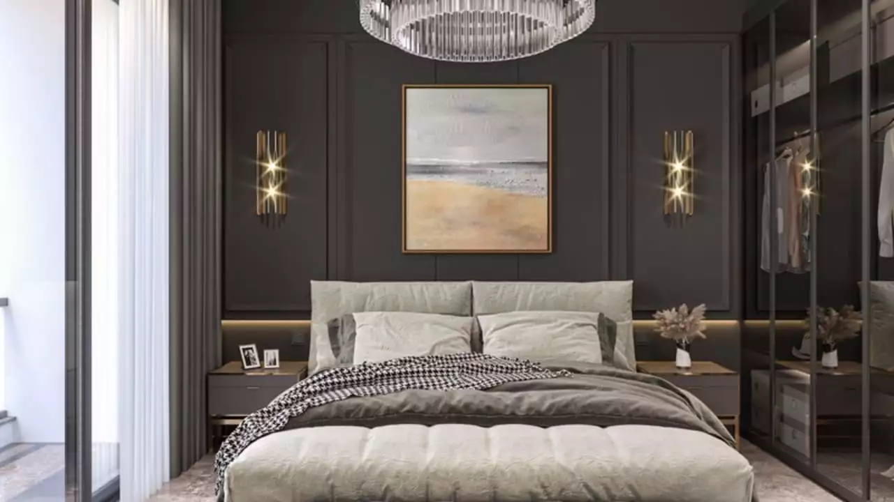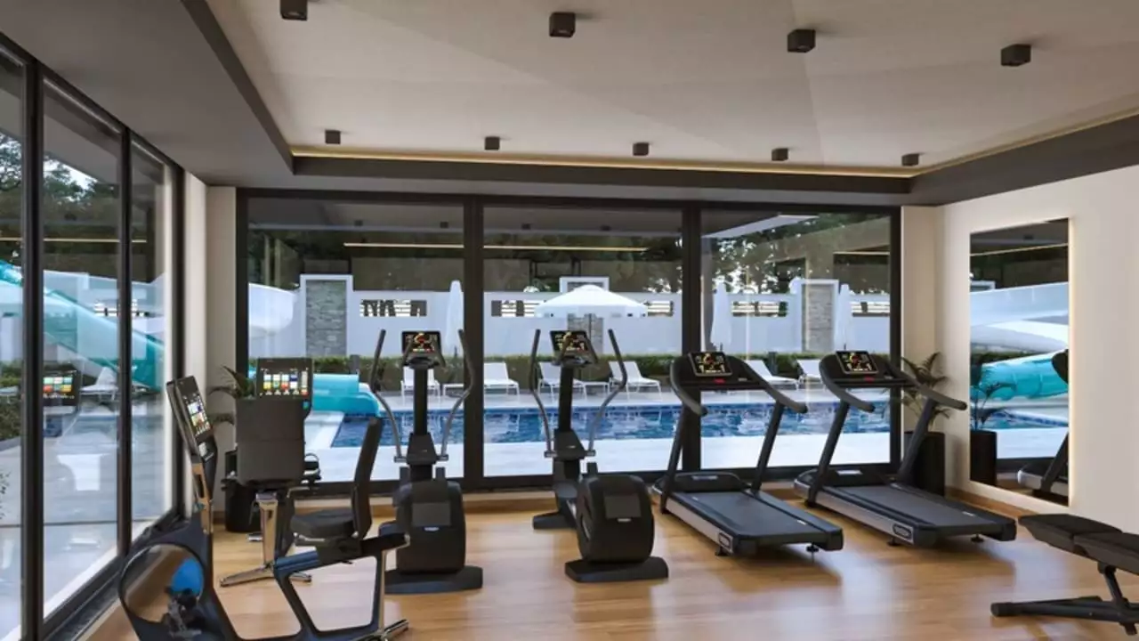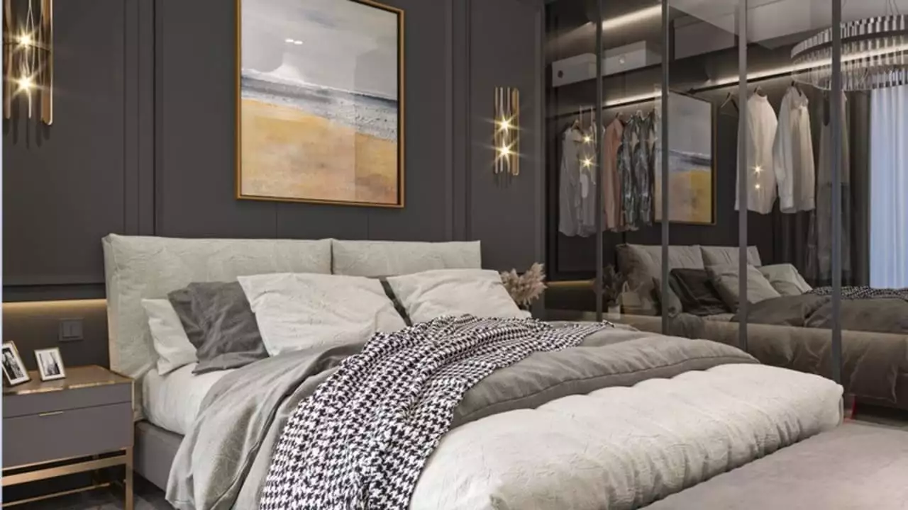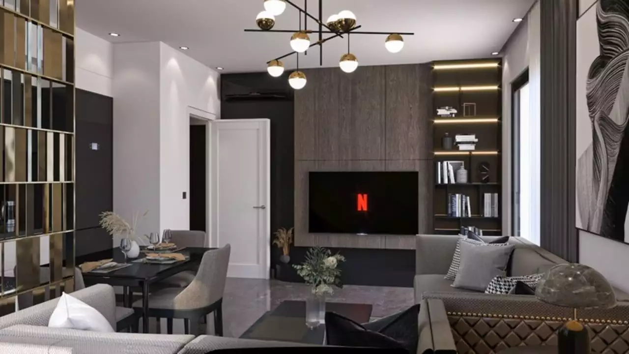 Внутри: Апартаменты планировкой 1+1, площадью 56 м2 предлагаются в стандартной чистовой отделке со встроенным кухонным гарнитуром и полностью укомплектованными санузлами.