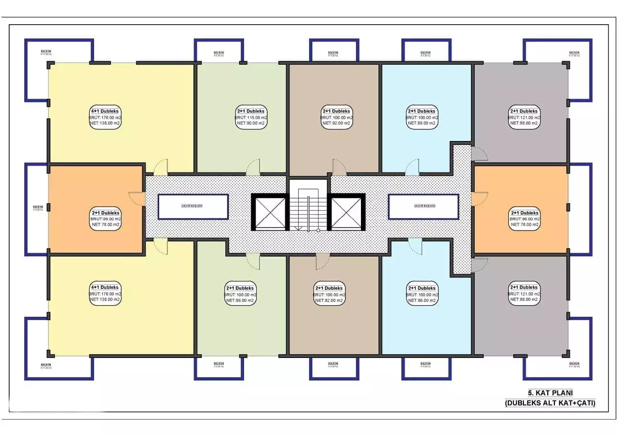 апартаменты планировкой 2+1 пентхаусы площадью от 90 до 118 м2.