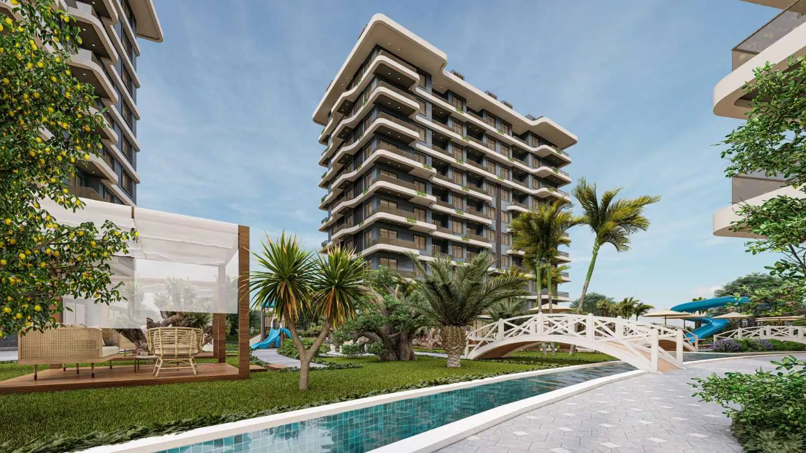 Что в комплексе: Новый проект, соответствующий концепции отеля, состоит из трех жилых домов с инфраструктурой. Для гостей и жителей будут предоставлены крытые и открытые бассейны с аквааэробикой, крытые и открытые детские площадки, турецкая баня, сауна, фитнес-зало, кинотеатр, конференц-зал, продуктовый магазин, бар у бассейна, кафе и парковка. Комплекс будет под видеонаблюдением и охраной, на территории комплекса будет находиться консьерж.;