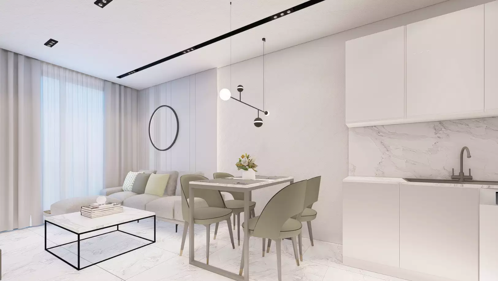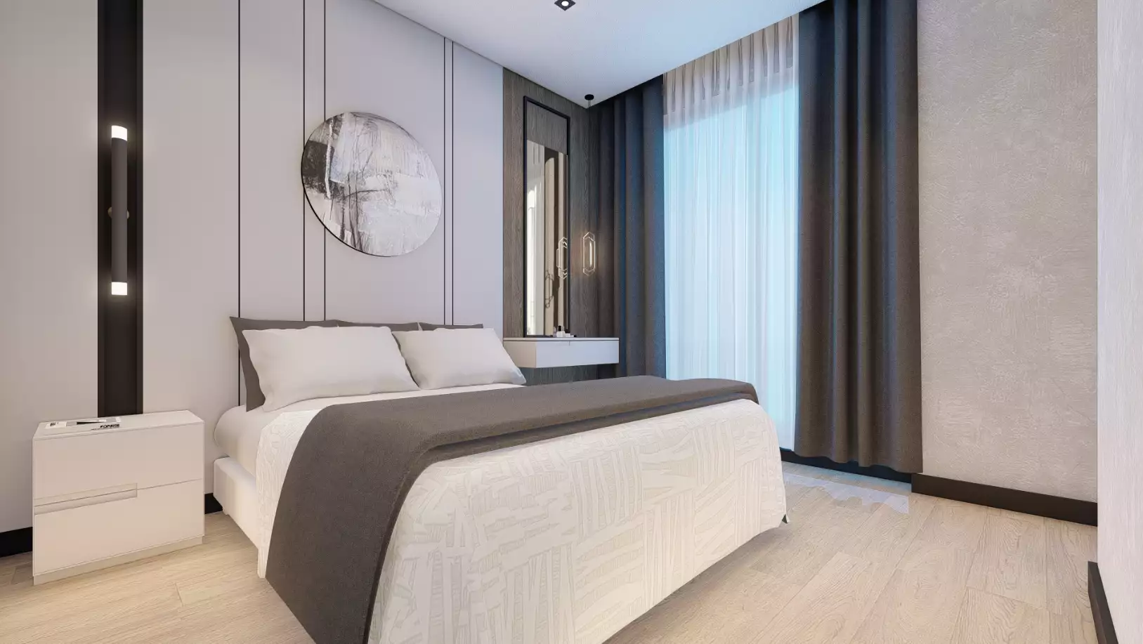 Квартиры будут представлены в современном стиле, с максимально открытым свободным пространством. Керамическая плитка, двери с двойным остеклением, межкомнатные панельные двери, а также покрытие стен изготовлены из высококачественных турецких материалов. Квартиры продаются с полной чистовой отделкой, уже оборудованные кухонным гарнитуром и сантехникой.