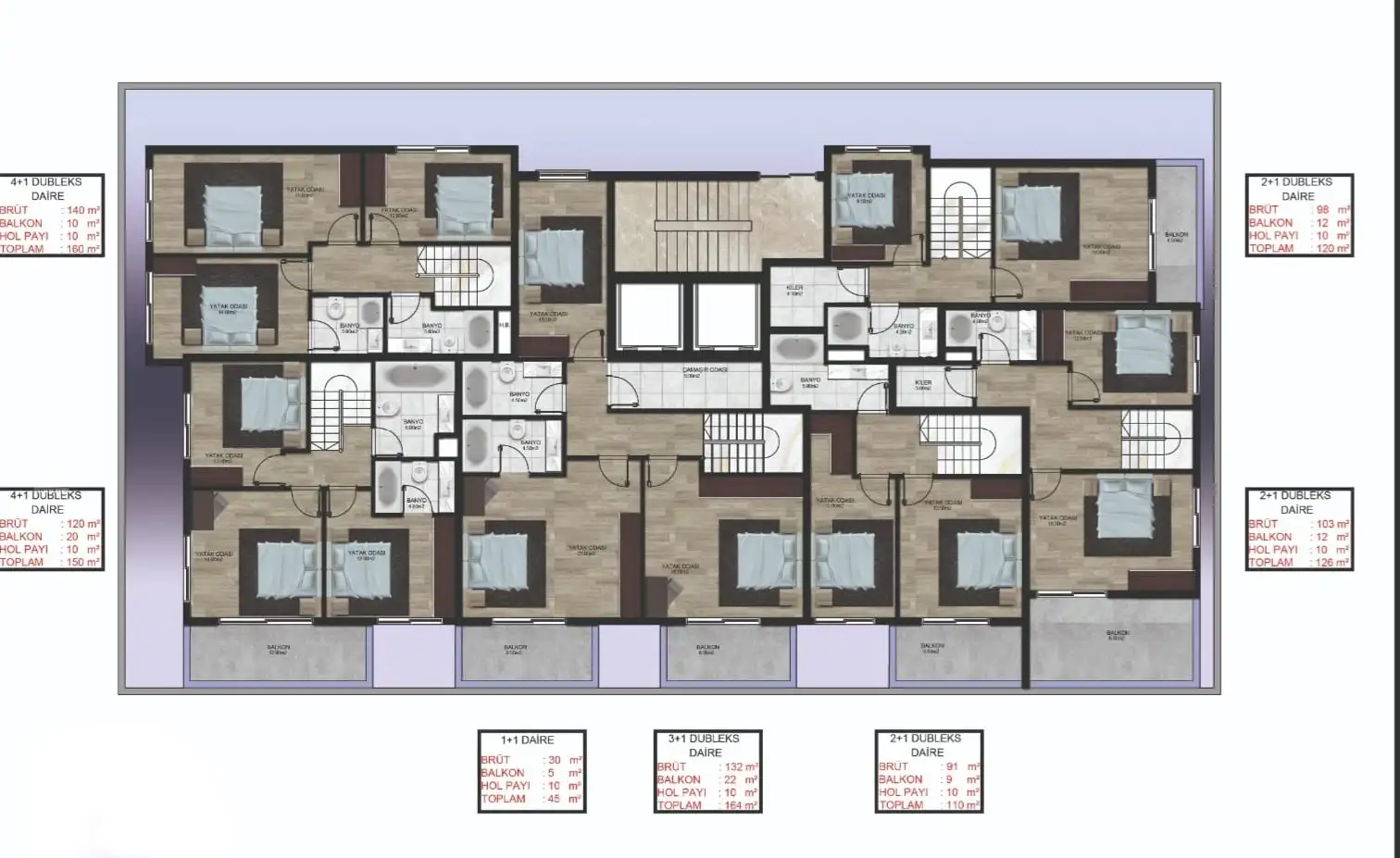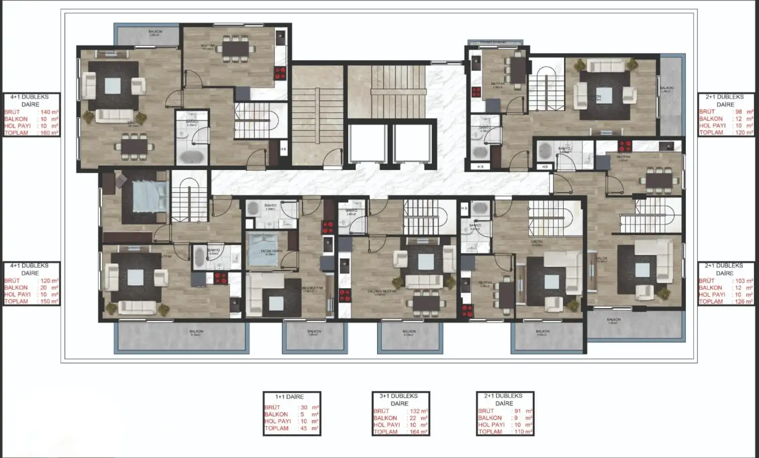 Пентхаусы 2+1, 3+1 и 4+1 площадью от 110 до 164 м2