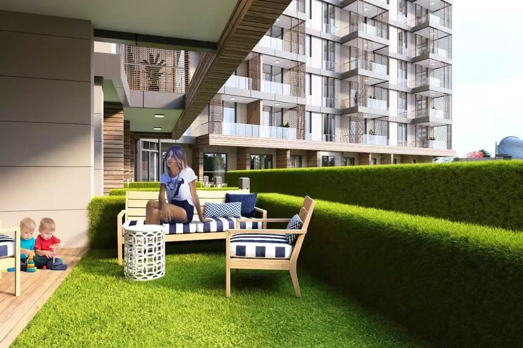 Что в комплексе: На закрытой, озелененной территории будет расположен один жилой блок, открытый бассейн с водными горками, зона отдыха у бассейна, детский бассейн, волейбольная/баскетбольная площадки, детская площадка, хаммам, финская сауна, мини клуб, открытая парковка, генератор.