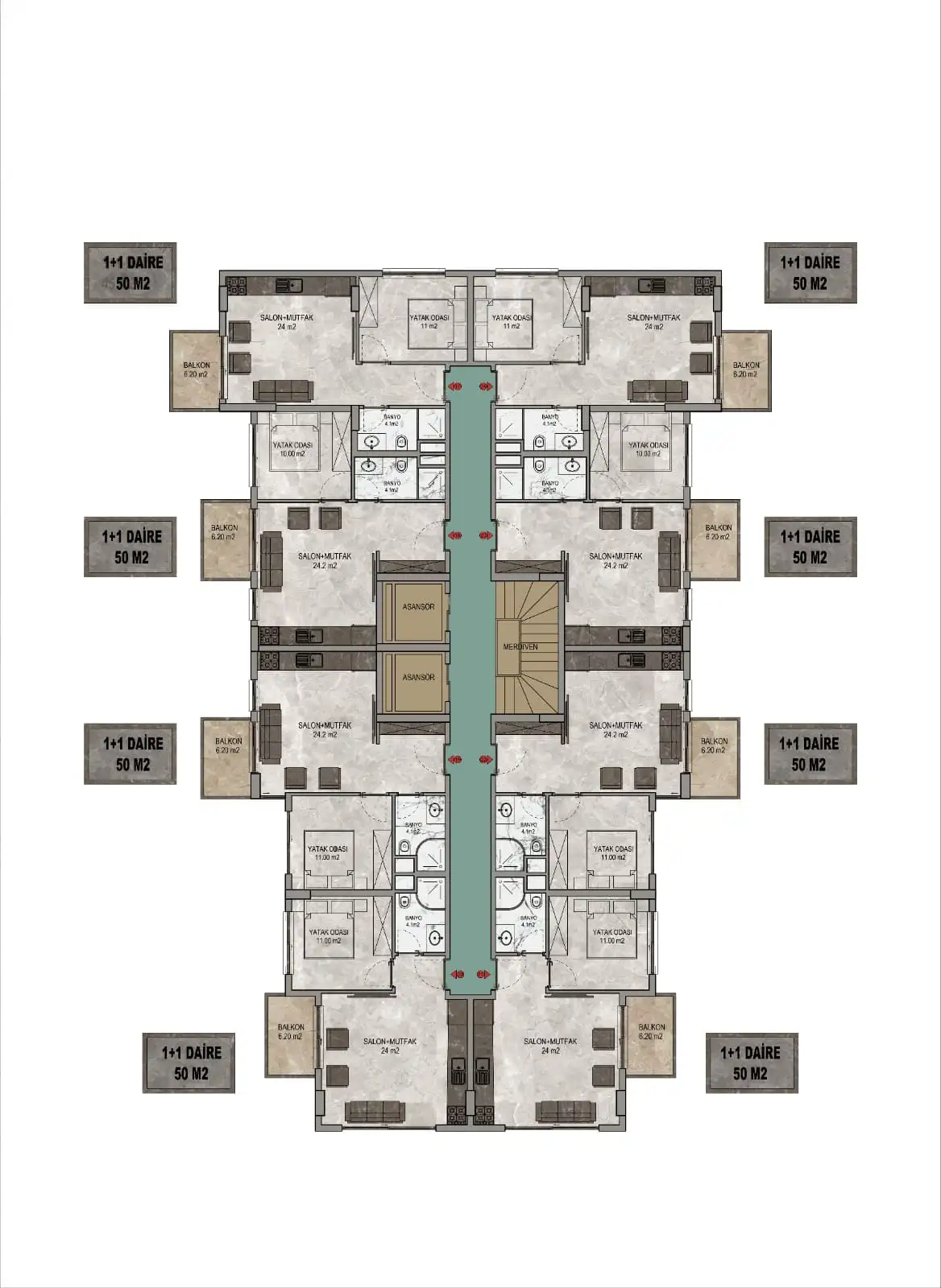 Что в комплексе: Комплекс строится на участке земли общей площадью 1.000 квадратных метров и будет состоять из одного пятиэтажного блока, собственной охраняемой территории и инфраструктуры, необходимой для комфортного отдыха и проживания