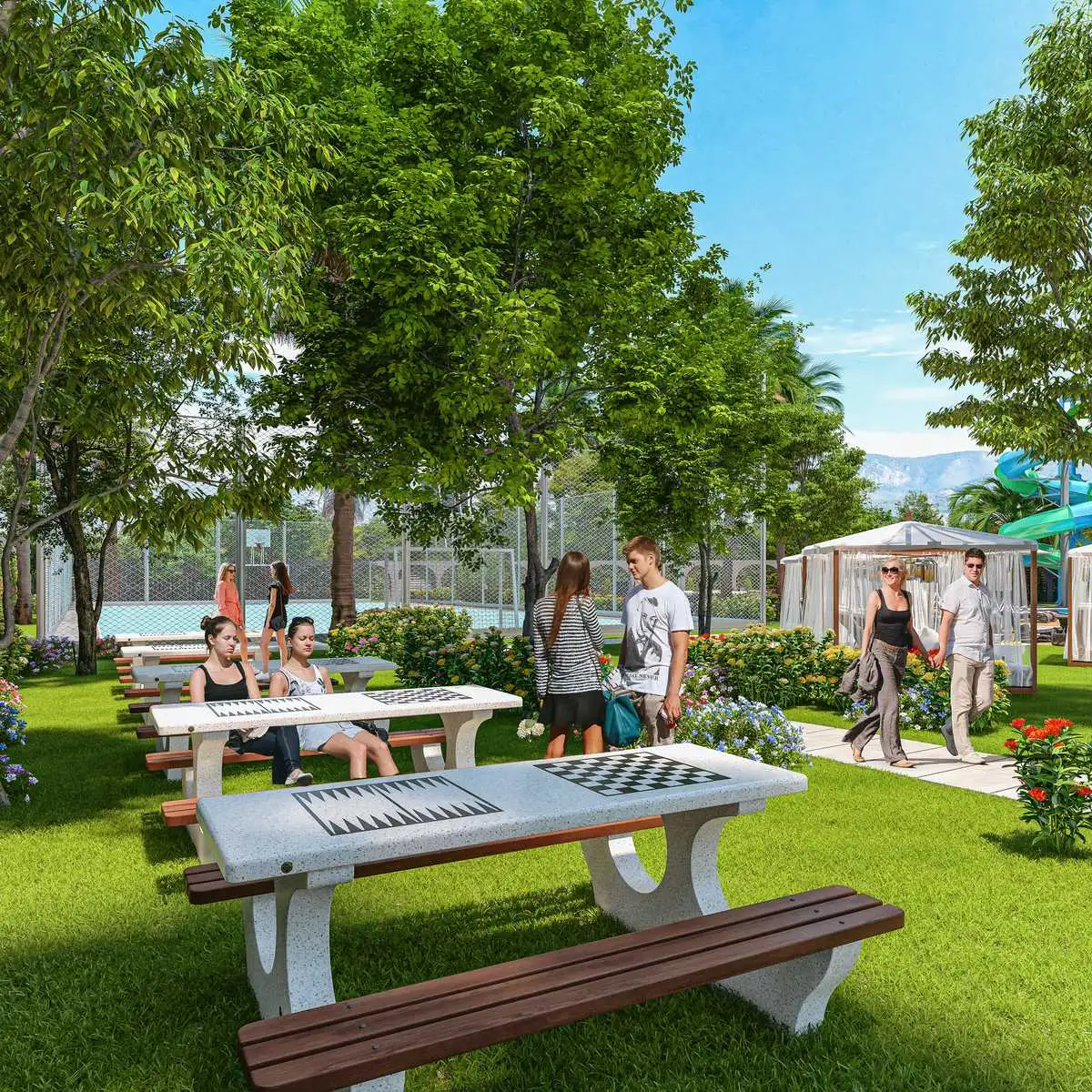 Что рядом: Комплекс возводится в 700 метрах от моря, в шаговой доступности от набережной реки Димчай -; природной достопримечательности Алании. На берегу реки разбит парк, а на самой реке расположены необычные кафе - беседки на сваях, стоящие прямо на воде, где приятно проводить время всей семьёй.;